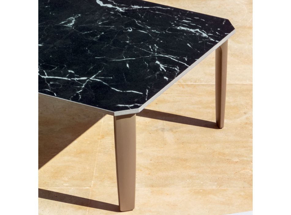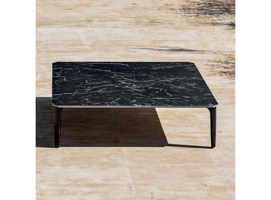 Niski stolik kawowy na zewnątrz wykonany z aluminium i kwadratowego blatu z porcelany, wysokiej jakości artykuł wyprodukowany we Włoszech.