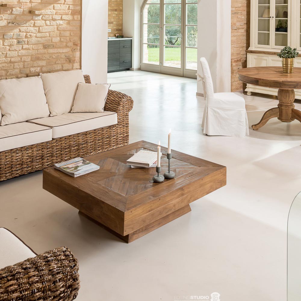 Kwadratowy stolik kawowy z drewna tropikalnego pochodzącego z recyklingu