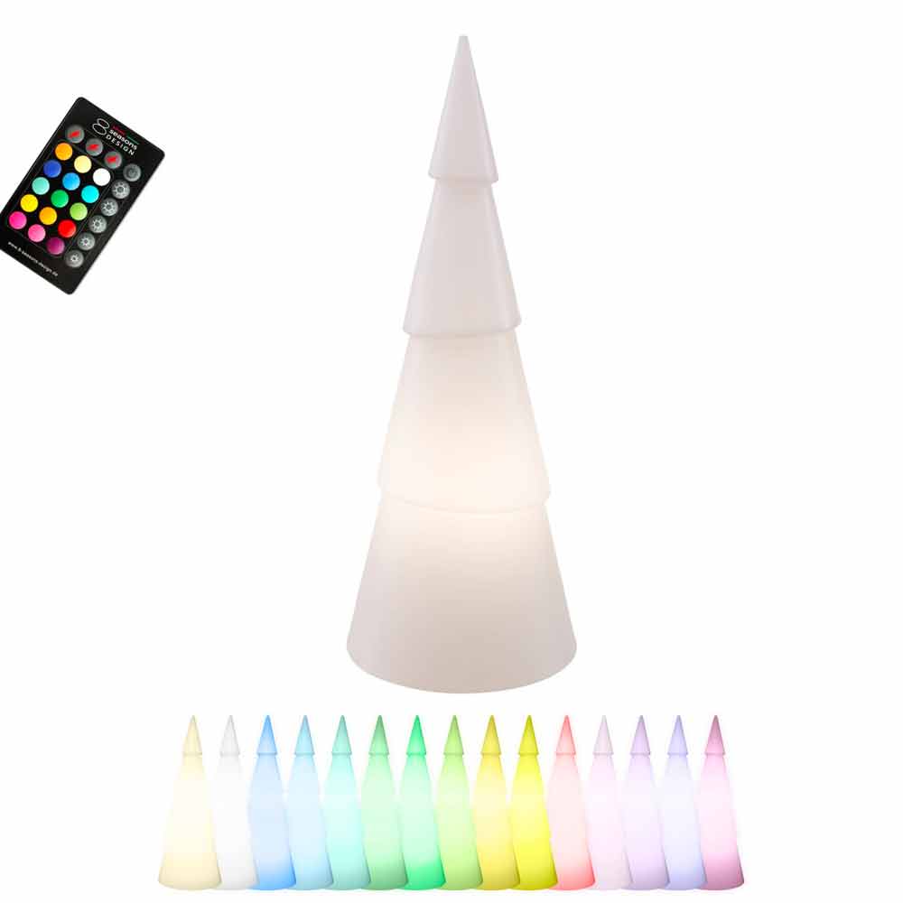 Lampa podłogowa LED lub solarna w kształcie stożkowej choinki w 3 rozmiarach do użytku wewnętrznego lub zewnętrznego.