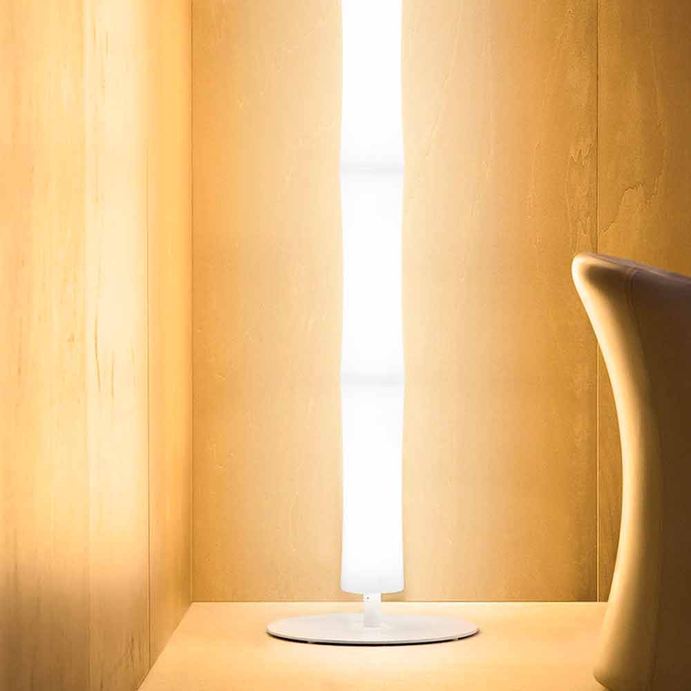 Lampa podłogowa wyprodukowana we Włoszech z mlecznobiałym dyfuzorem z polietylenu i chromowanymi metalowymi detalami w komplecie ze zintegrowaną diodą LED, ściemniaczem (pedał lub aplikacja), ściemnianym zasilaczem elektronicznym i przezroczystym kablem o długości 200 cm. Pomysł na oświetlenie, który ma na celu optymalizację przestrzeni poprzez oferowanie produktu zdolnego odpowiedzieć na najróżniejsze potrzeby zarówno w przestrzeniach domowych, jak i kontraktowych, zawsze zapewniając bardzo wysoki standard jakości światła, a także dużą elastyczność użytkowania i silną osobowość scenograficzną . Dzięki innowacyjnej i funkcjonalnej technologii źródła LED, wariator natężenia światła pozwala również na rozprowadzanie światła równomiernie na całej długości klosza, co tworzy wspaniały klimat, a jednocześnie zapewnia optymalne oświetlenie.