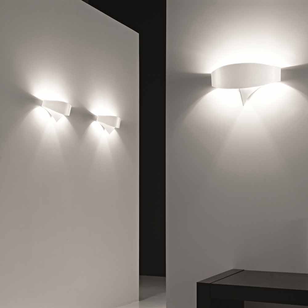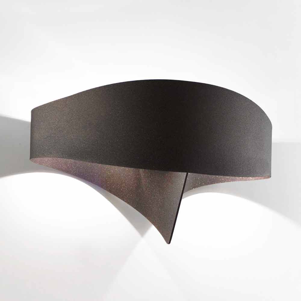 Jest to lampa ścienna stworzona na bazie stalowej taśmy kształconej laserem, która jest następnie gięta ręcznie, tworząc niepodzielny i otaczający element.