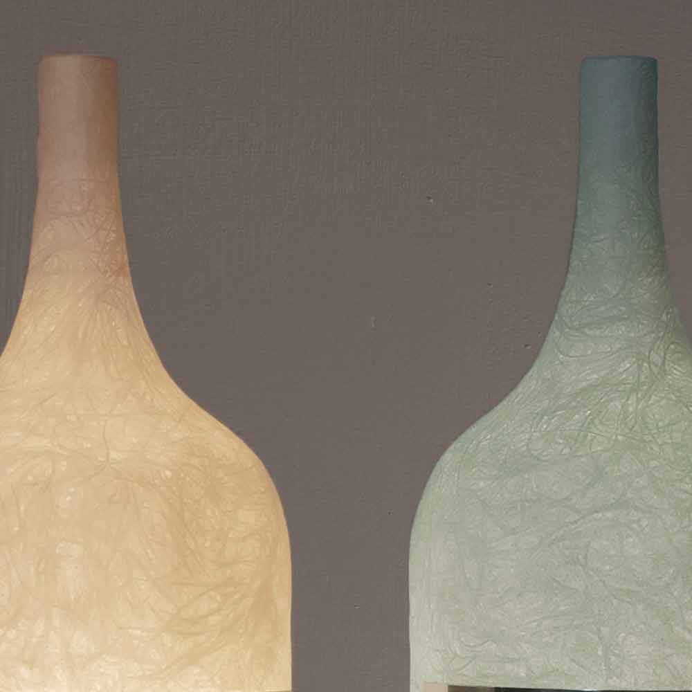 Lampa stołowa Luce Liquid 1 słynie z pięknego smukłego światła zamkniętego w butelce.