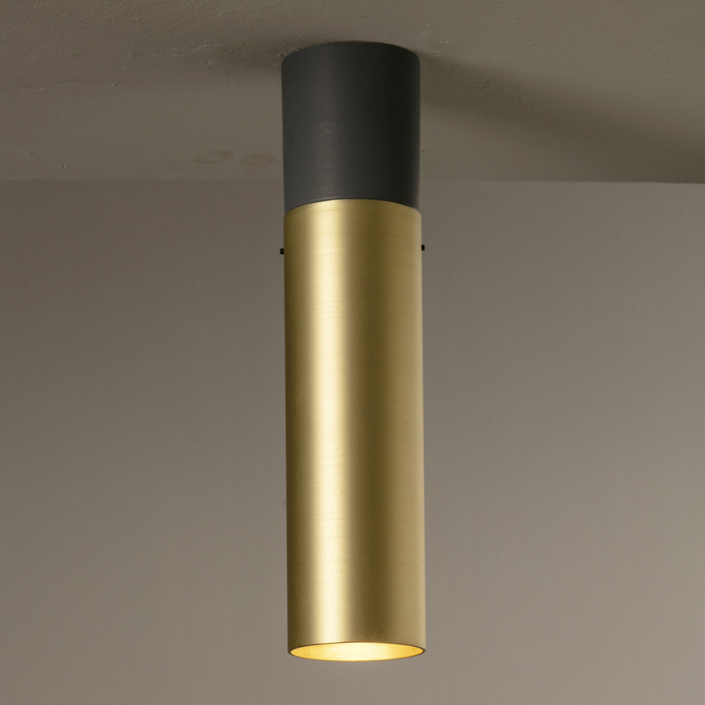 Lampa sufitowa wykonana ręcznie z ceramiki i szczotkowanego mosiądzu we Włoszech.
