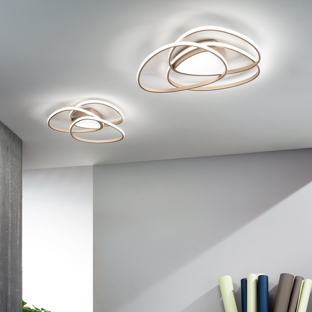 Nowoczesna, ściemniana lampa sufitowa LED o metalowej konstrukcji.