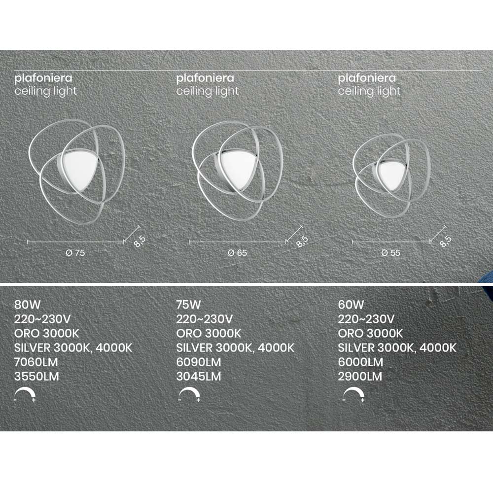 Dostępne rozmiary:- średnica 75 x wys. 8,5 cm (LED 80W 220-230V 3000K 7060LM);