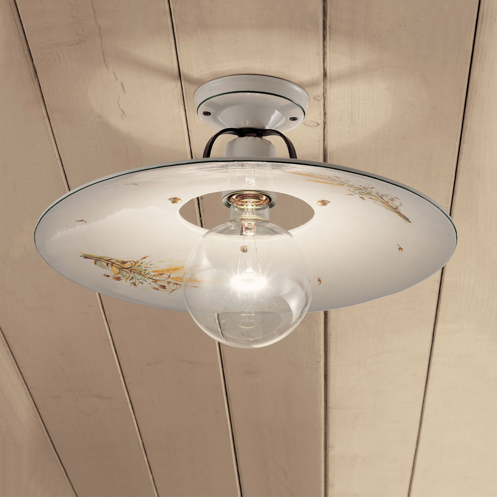 Lampa sufitowa w stylu vintage z surowego żelaza i ceramiki z ręcznymi dekoracjami, 2 rozmiary, wyprodukowana we Włoszech przez Ferroluce.