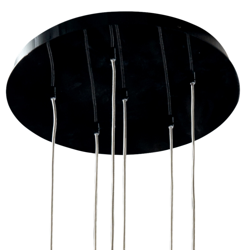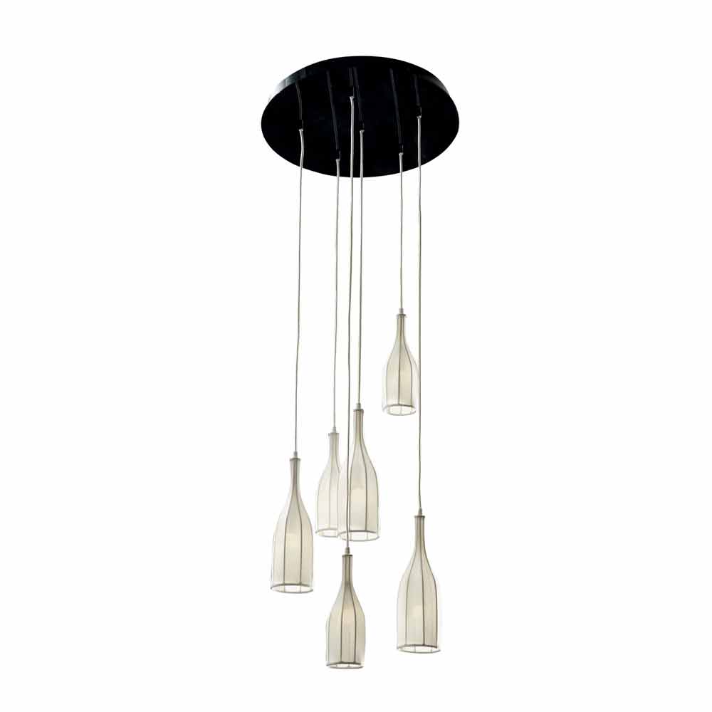 Składa się z lakierowanej konstrukcji metalowej i sześciu abażurów z tkaniny.