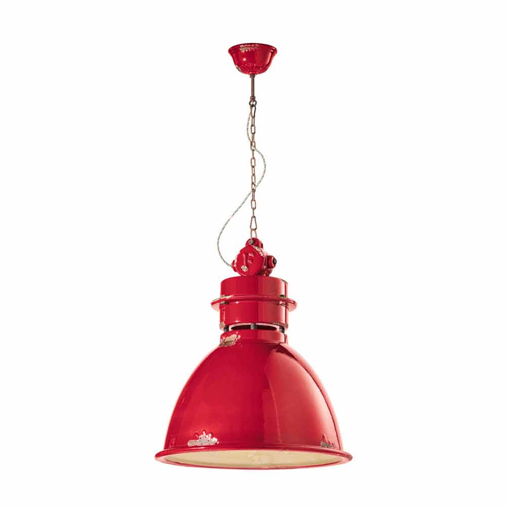 Ta piękna lampa składa się z konstrukcji z metalowymi detalami oraz klosza z błyszczącej ceramiki, dostępnej w różnych kolorach.