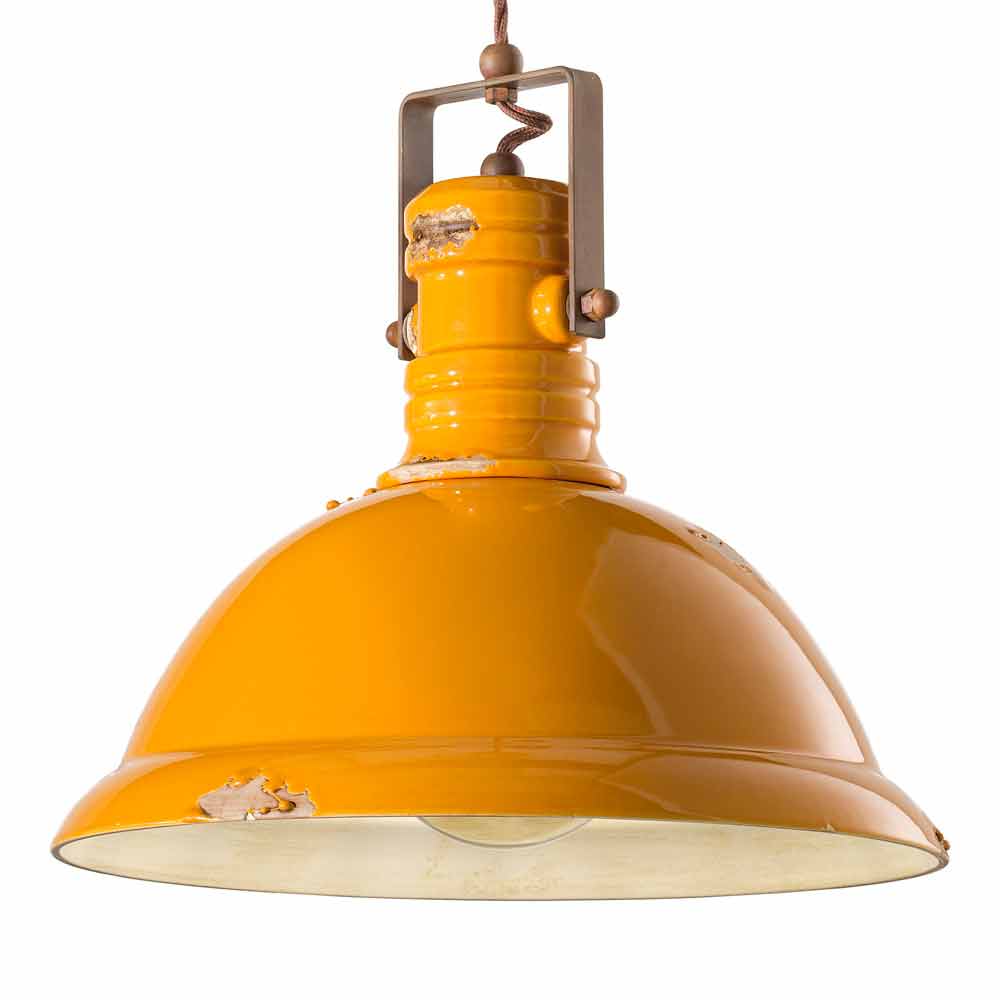 Ta piękna lampa składa się z żelaznej konstrukcji z kloszem z błyszczącej ceramiki, dostępnej w różnych kolorach.