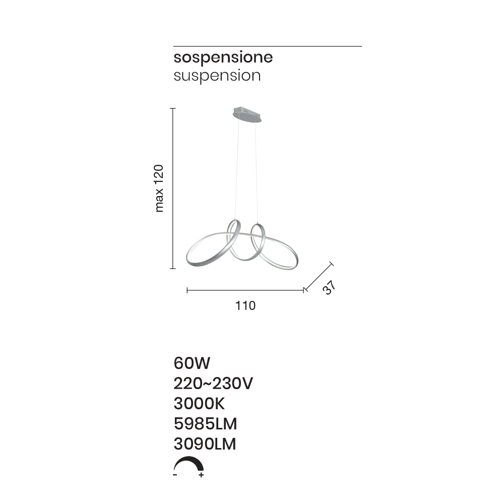- dł. 110 x gł. 37 x wys. max 120 cm (LED 60W 220-230V 3000K 5985LM).
