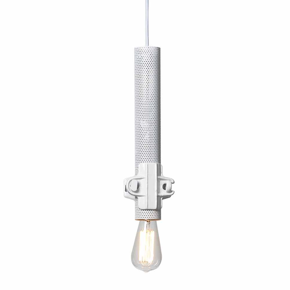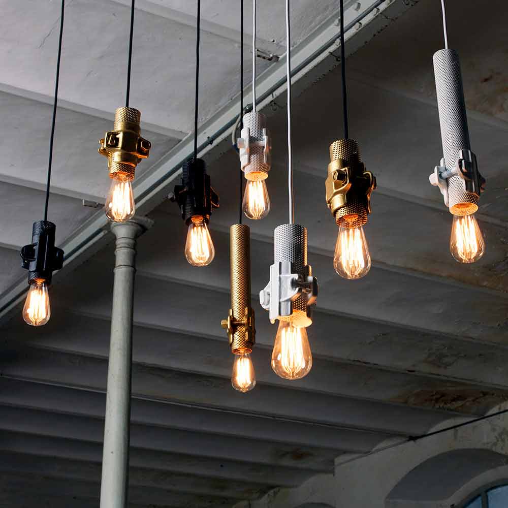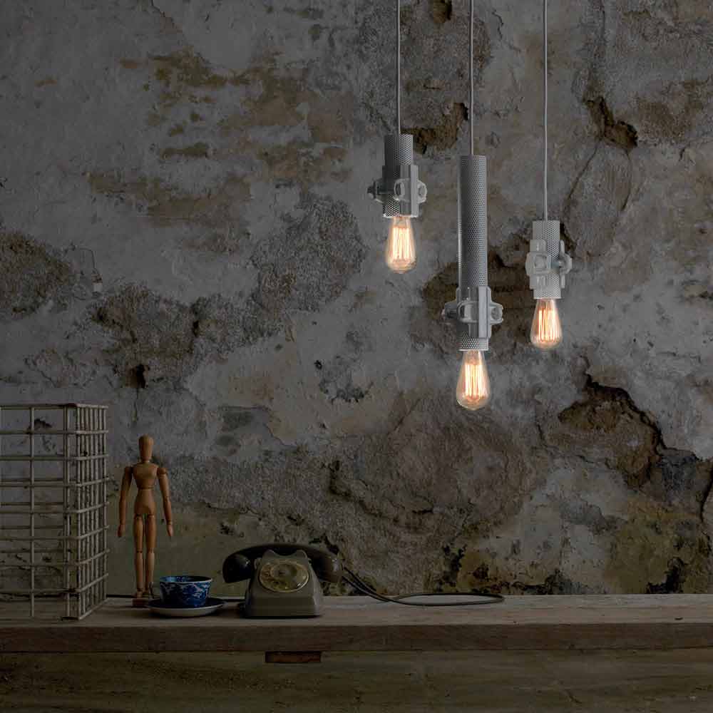 Ta oryginalna i jedyna w swoim rodzaju lampa wisząca składa się z rury i złącza, dwóch elementów, które mogą przekształcić się w wektory światła, tworząc projekt między technicznym a wyrafinowanym stylem przemysłowym.