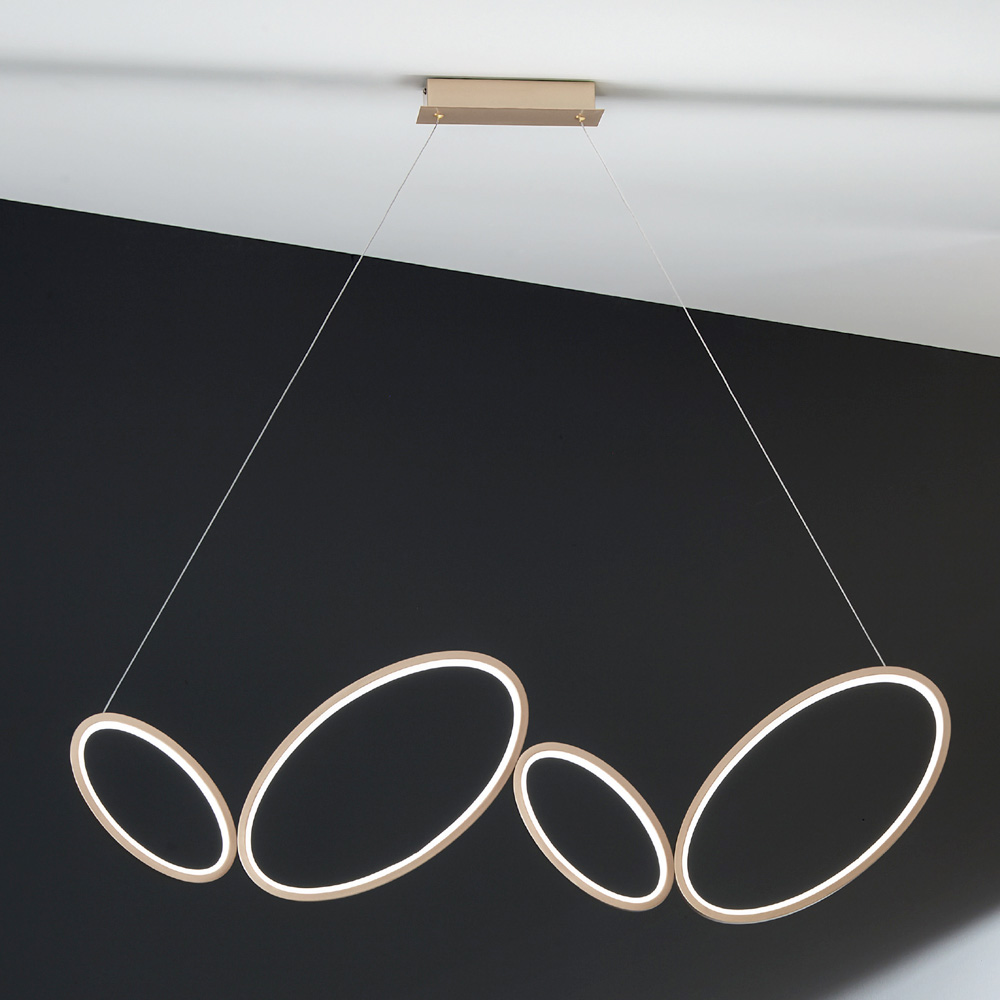 wyrafinowany i innowacyjny projekt, który może podbić centrum uwagi w domowych przestrzeniach, takich jak jadalnie, kuchnie, salony czy sypialnie. łóżko z nowoczesnymi meblami. Wspaniałe złote wykończenie podkreślające całą strukturę nadaje produktowi