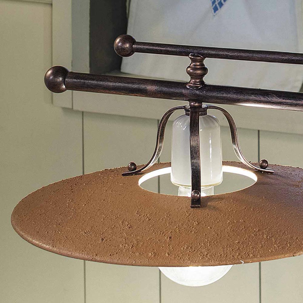 Lampa wisząca z 2 lampkami z żelaza i ręcznie robionej szorstkiej ceramiki, wyprodukowana we Włoszech przez Ferroluce.