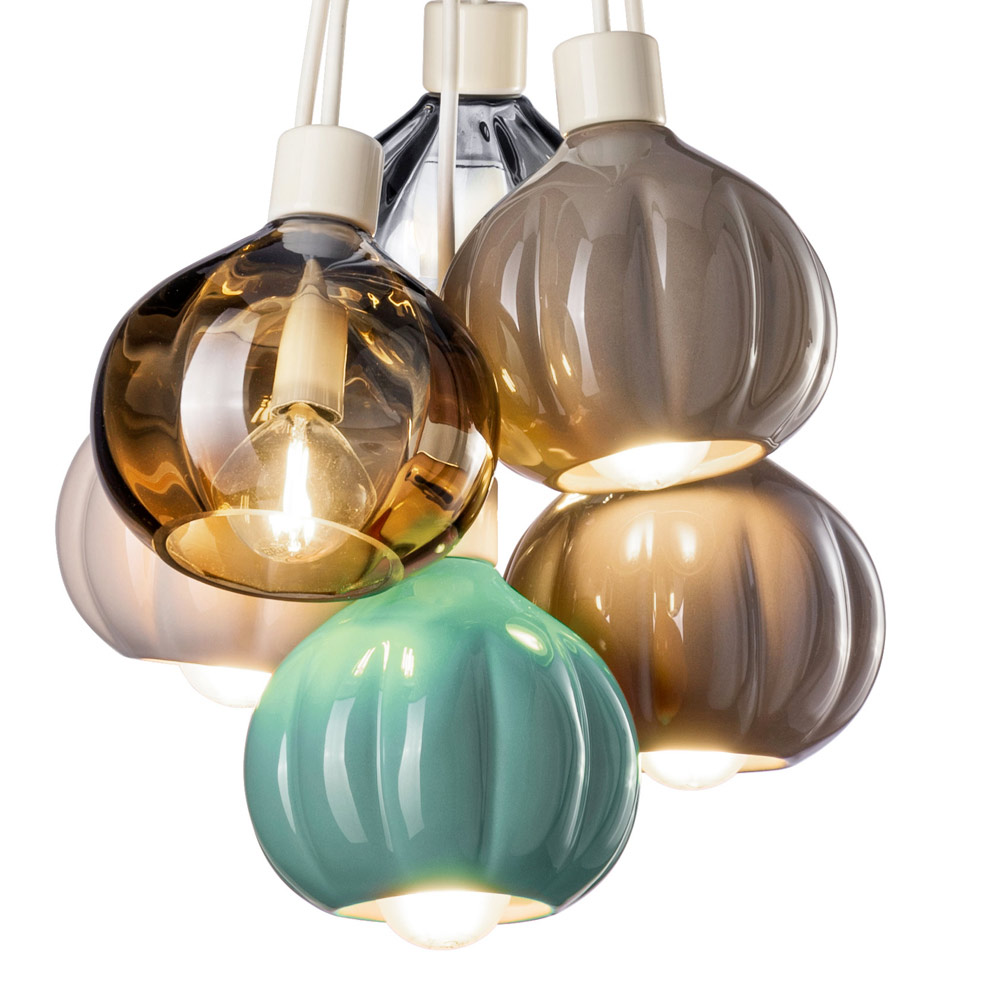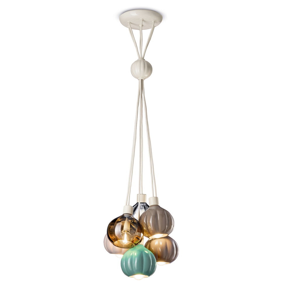 Ta lampa wisząca to prawdziwe arcydzieło sztuki świetlistej , łączące tradycję ceramiki z nowoczesnością szkła w idealnej jedności. Szklane kule, każda w innym odcieniu, są hołdem dla chromatycznej Selaròn natury, od bursztynu zachodu słońca, przez zieleń drzew, aż po przezroczystość czystej wody. Ceramika o miękkiej i świetlistej fakturze dodaje odrobinę ciepła i autentyczności, przywołując rzemieślnicze korzenie włoskiego designu.