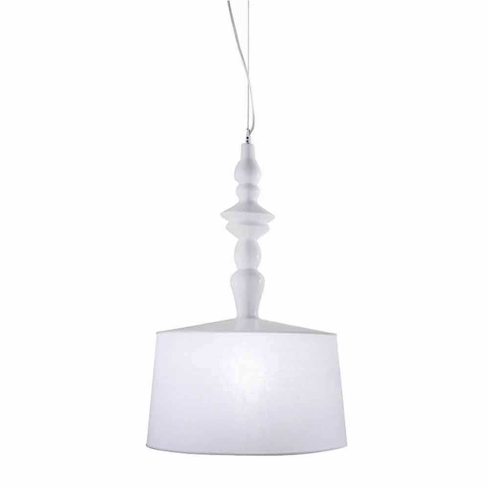 Lampa wykonana jest z błyszczącej białej ceramiki jako materiału, który reprezentuje pochodzenie, plastyczność, twórczość i prowadzi bezpośrednio do początków naszej kultury. Abażur z lnu.