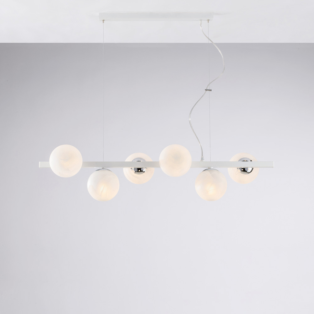 Dostępna w eleganckim wykończeniu biało-chromowym lub czarno-brązowym , ta lampa wisząca idealnie pasuje do nowoczesnych salonów , jadalni , wysp kuchennych , otwartych przestrzeni i designerskich wnętrz . To element oświetleniowy odzwierciedlający jakość włoskiego rzemiosła i dbałość o detale.