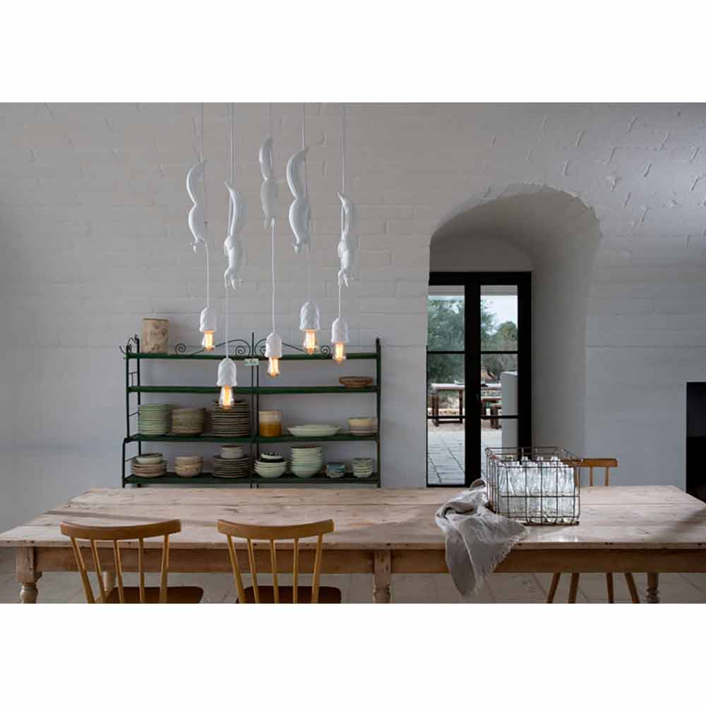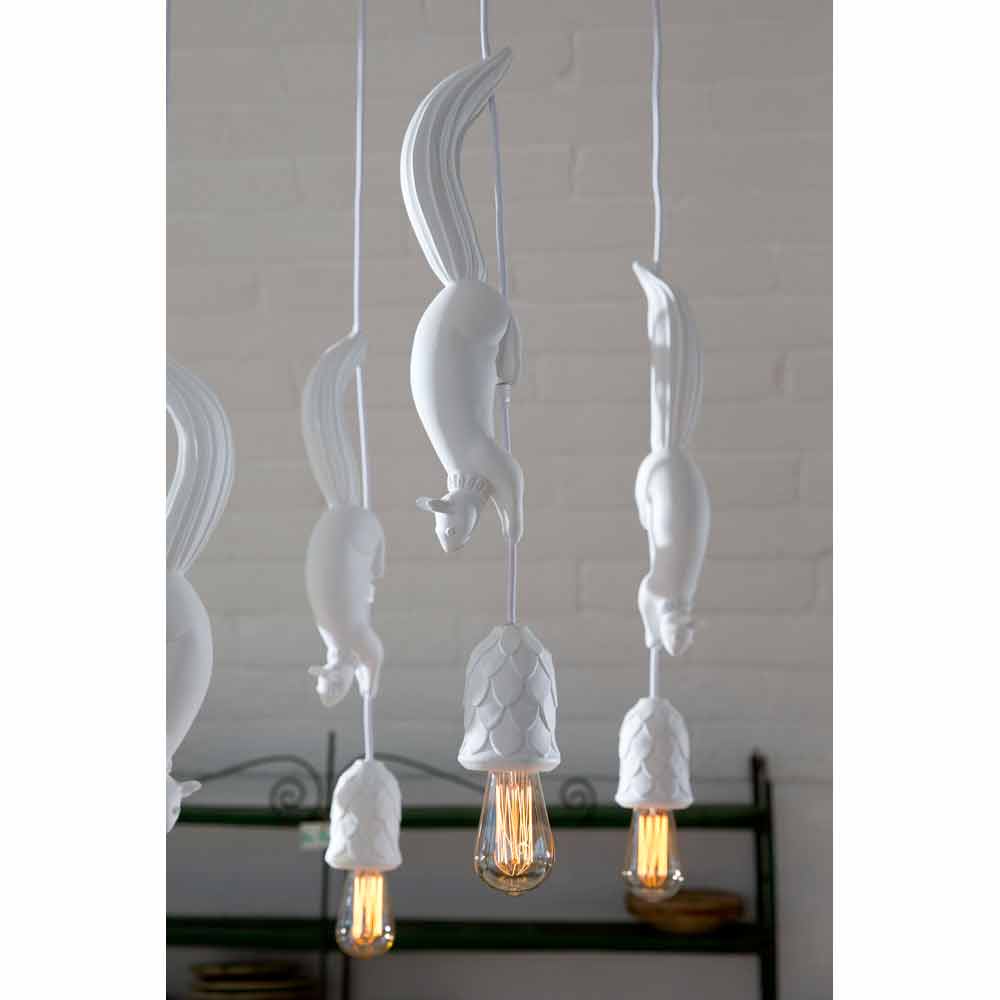 Ta oryginalna i jedyna w swoim rodzaju lampa wisząca ma oryginalny i nowoczesny design z przedstawieniem żarówki, która zamienia się w żołądź gotowy do podniesienia przez zwierzę schodzące po drucie. To efektowne uzupełnienie, zapewniające zabawną i elegancką atmosferę, jak owoce świetlistego poszycia, które chcą podkreślić autentyczność i tysiące odcieni, które charakteryzują osobowość każdego z nich, poprzez przedstawienie świetlistych elementów o unikalnym designie i innowacyjności .