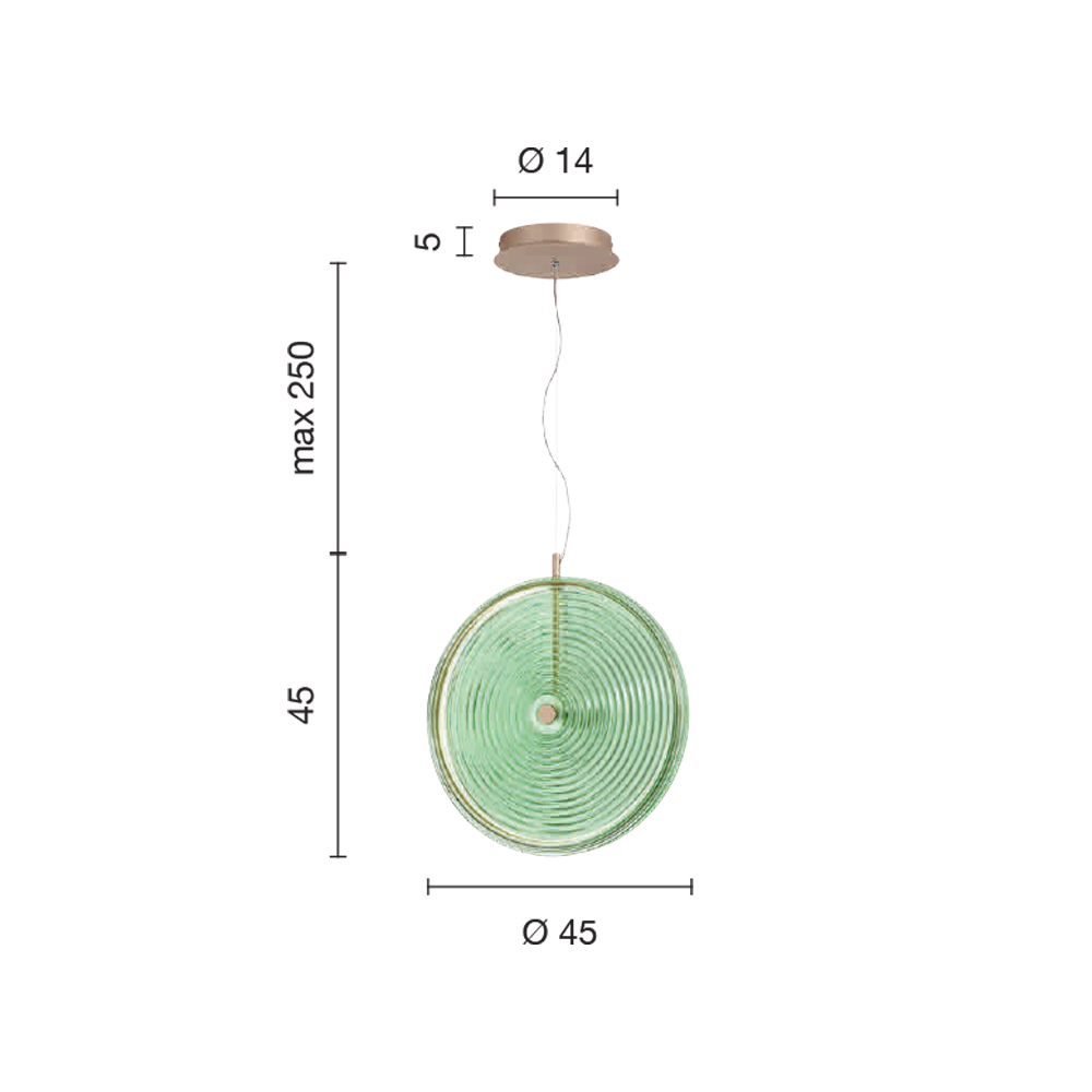 Stały rozmiar:- podstawa w suficie: średnica 14cm x wysokość 5cm