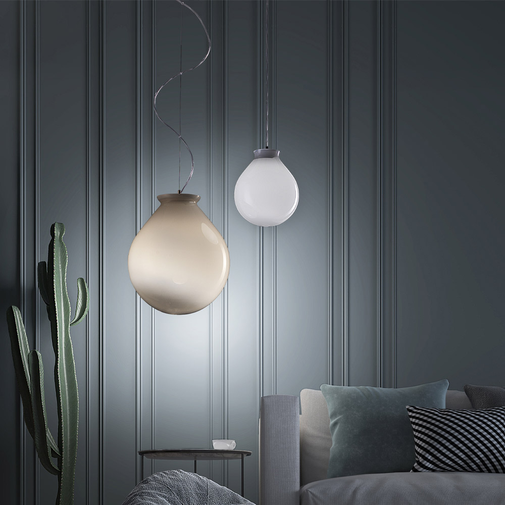 Ręcznie wykonana lampa wisząca z dmuchanego szkła weneckiego, nowoczesny design.