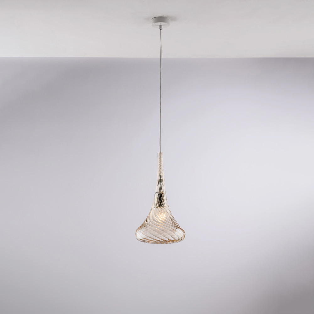 Dostępna w wykończeniu transparentnym , bursztynowym lub szarym , ta lampa wisząca z łatwością dopasowuje się do różnorodnych aranżacji: jasna i minimalistyczna w wersji transparentnej, ciepła i otulająca w bursztynowej, stonowana i elegancka w szarej. Idealnie nadaje się do kuchni , wysp kuchennych , stołów jadalnych , korytarzy , kącików do czytania i designerskich przestrzeni biurowych , zarówno pojedynczo, jak i w kompozycjach.