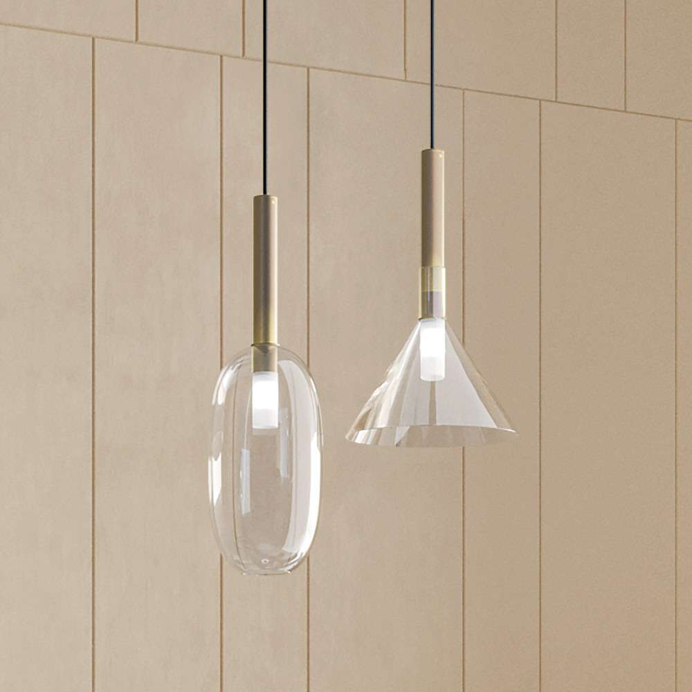 wyprodukowane we Włoszech. Z połączenia cylindrycznego elementu z naturalnego mosiądzu i szklanych dyfuzorów o różnych kształtach rodzi się delikatna i elegancka kolekcja. Lampy wiszące, które można skomponować tak, aby każde otoczenie było wyjątkowe i wyjątkowe, w alchemii proporcji, kombinacji, wymiarów, kształtów i materiałów.