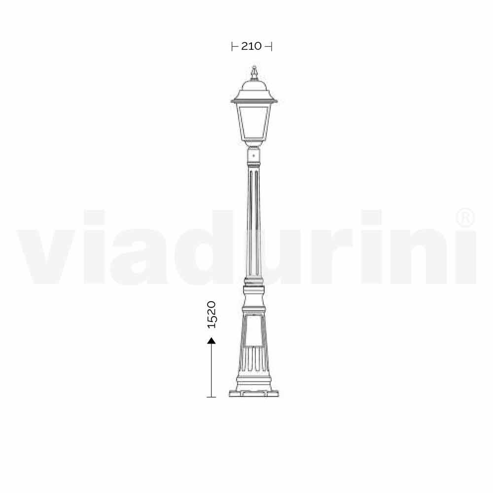 Aquilina to jednopunktowa lampa uliczna zewnętrzna, wykonana ręcznie we Włoszech z wysokiej jakości materiału: konstrukcja z odlewanego ciśnieniowo aluminium i dostępny dyfuzor ze szkła: przezroczysty lub piaskowany.