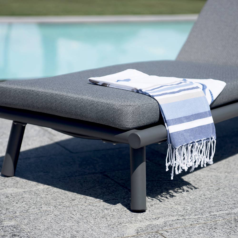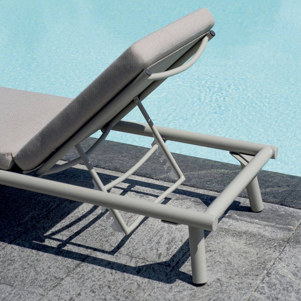 Ten leżak łączy w sobie komfort, elegancję i trwałość , dzięki czemu stanowi idealne uzupełnienie każdej przestrzeni na świeżym powietrzu, tworząc wyrafinowany kącik relaksacyjny. Aluminiowa rama zapewnia lekkość i solidność, dzięki czemu idealnie nadaje się do codziennego użytku w ogrodzie, na tarasie lub przy basenie.