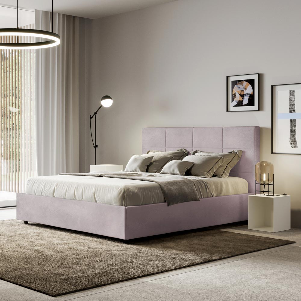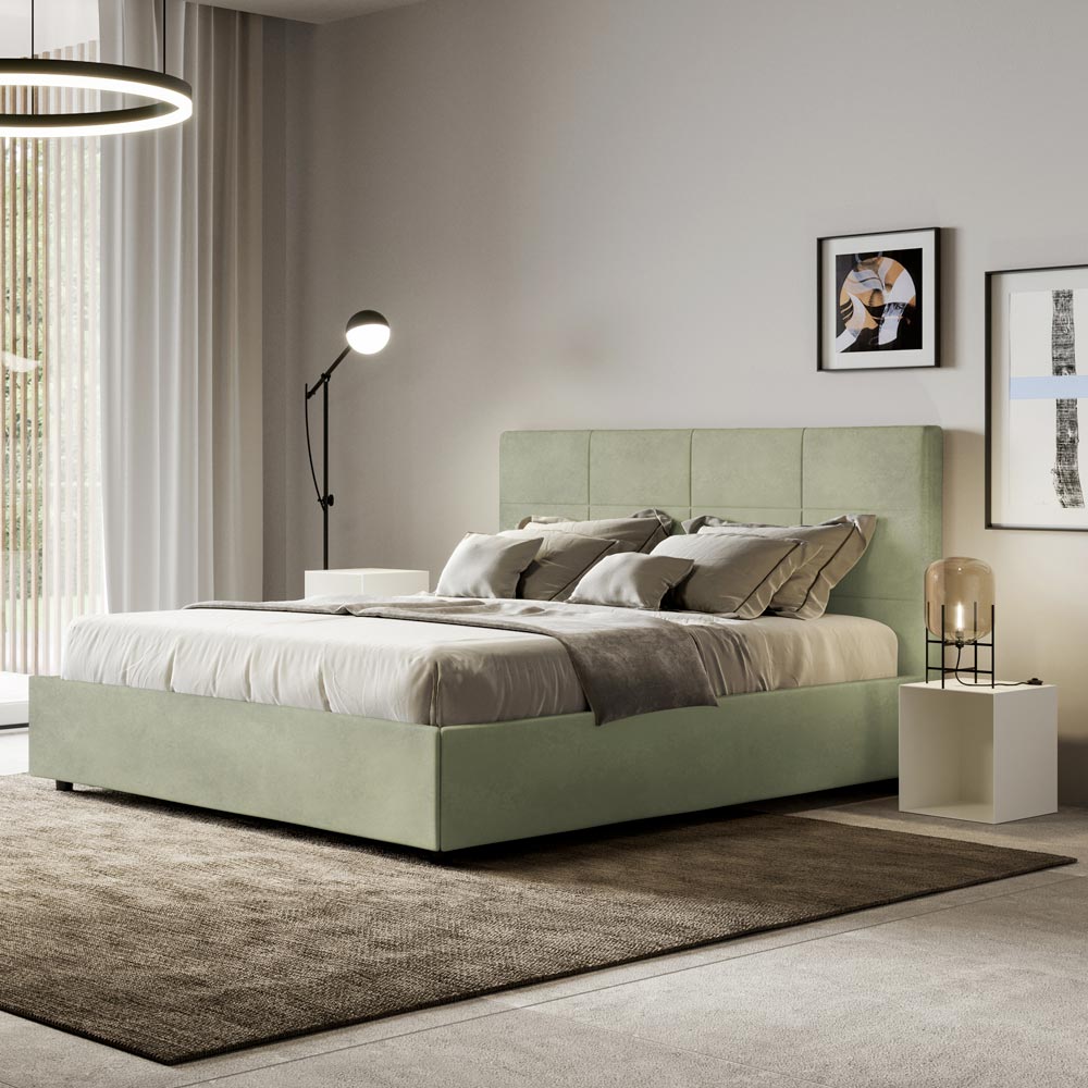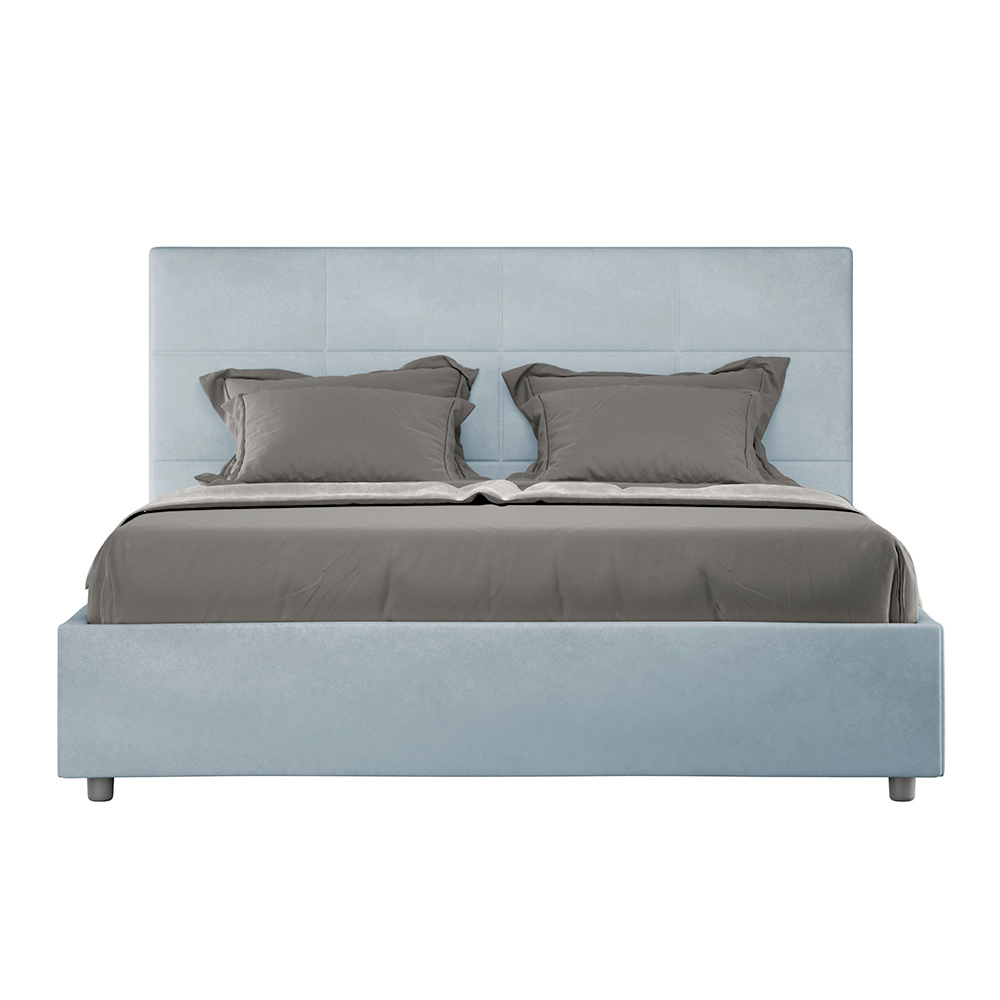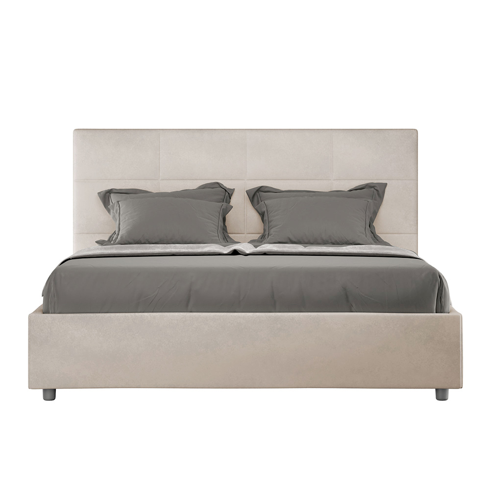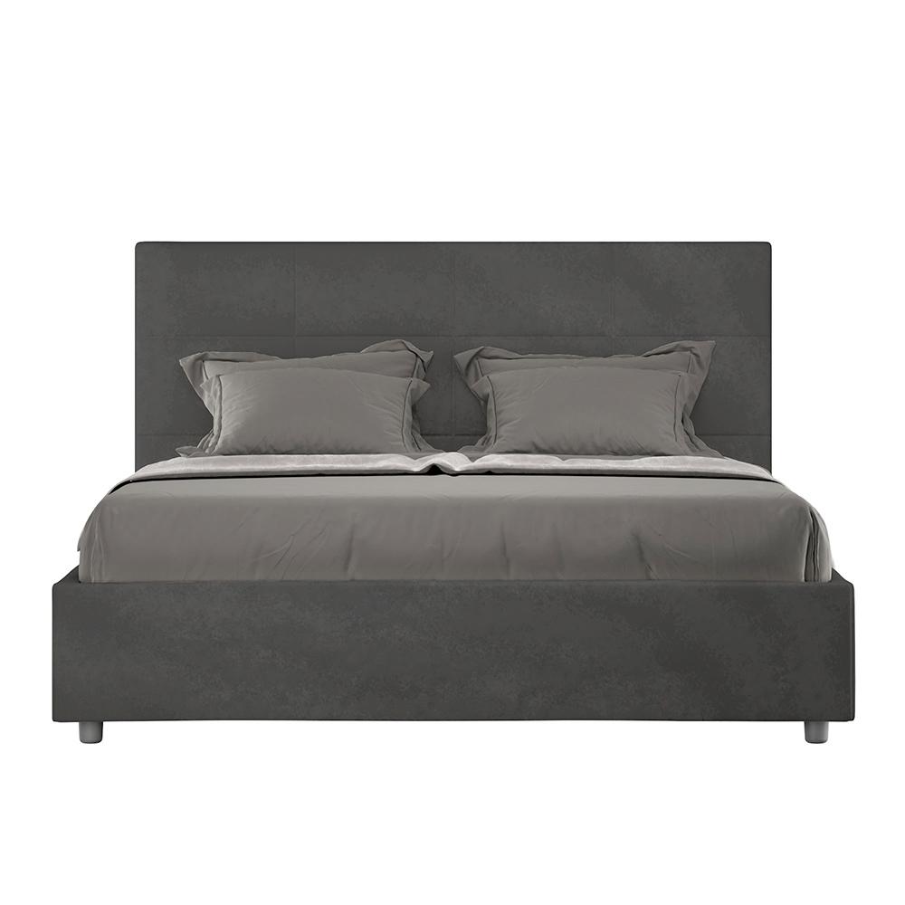 Łóżko dwuosobowe z wyściółką o wymiarach 160x200 cm, wykonane z płyty wiórowej i pokryte mikrofibrą , w całości wyprodukowane we Włoszech. To łóżko z wyściełaną ramą jest doskonałym przykładem połączenia elegancji i wygody w jednym meblu. Model ten charakteryzuje się zagłówkiem wzbogaconym oProstokątne wzory geometryczne . Pokryte mikrofibrą, łatwe w utrzymaniu czystości: wystarczy użyć ściereczki z mikrofibry, aby szybko i skutecznie wyczyścić.