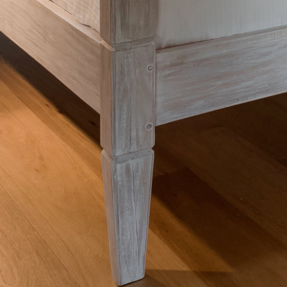 Łóżko jest ręcznie wykonane z naturalnie suszonego drewna, żywego materiału, który z czasem ulega naturalnym ruchom. Wszelkie sęki i drobne pęknięcia są wrodzone i mogą się pojawić z czasem.