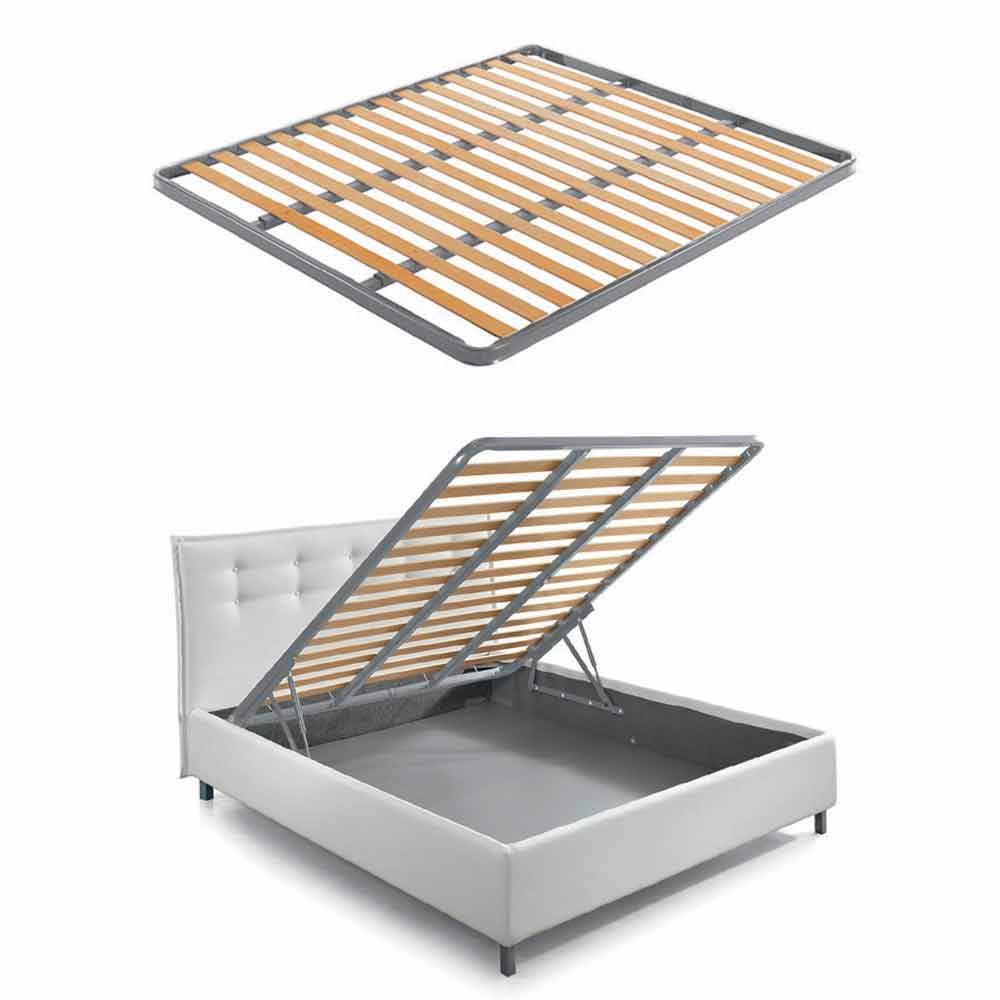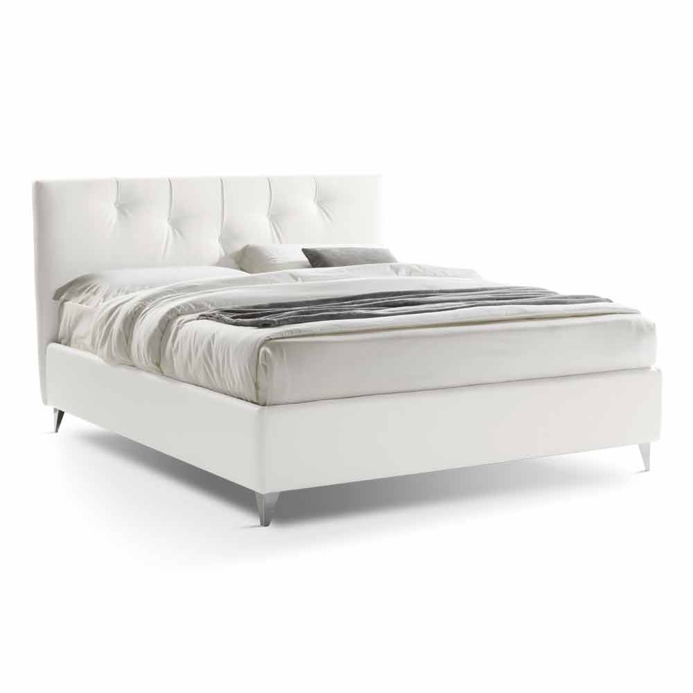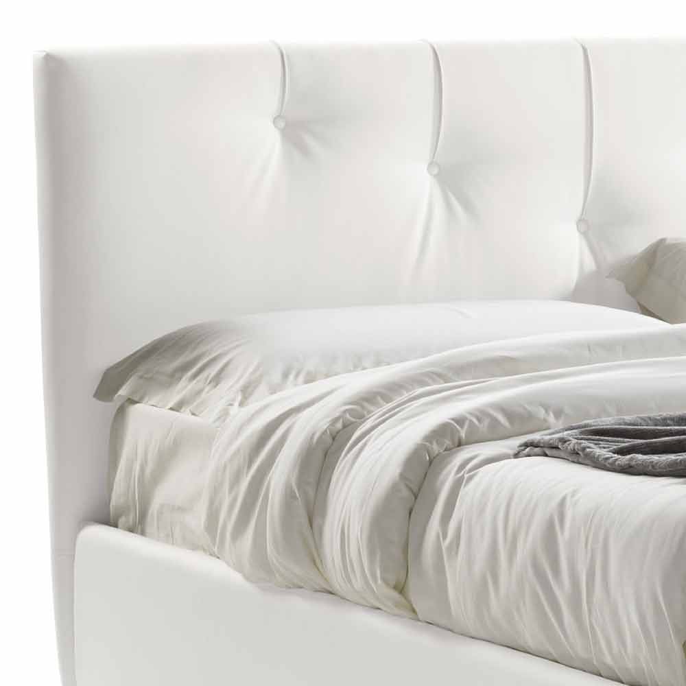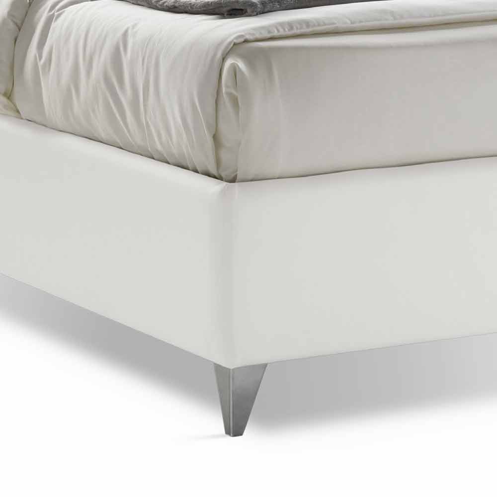 Łóżko podwójne z pojemnikiem o nowoczesnym designie, wykonane ręcznie we Włoszech, z białej eko-skóry.