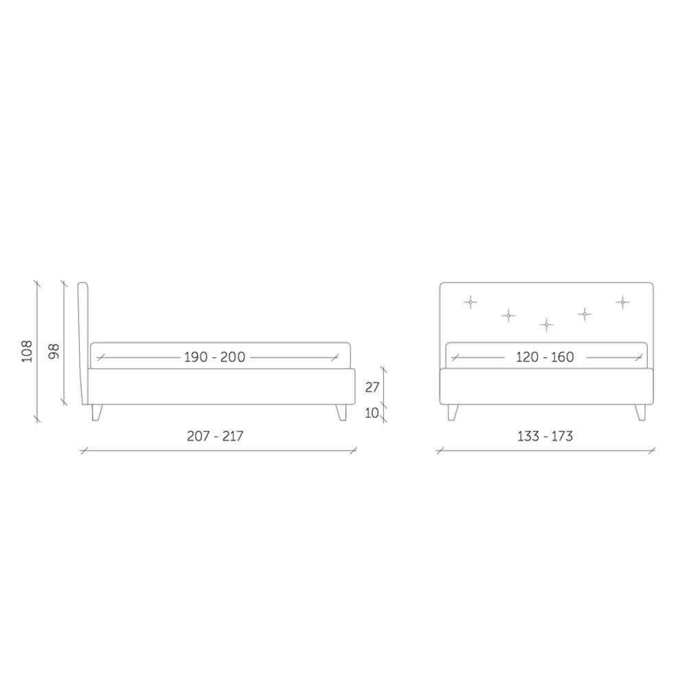 Zagłówek wykończony jest pionowymi, wspornikowymi zagięciami, ozdobionymi pikowaniem na guziki