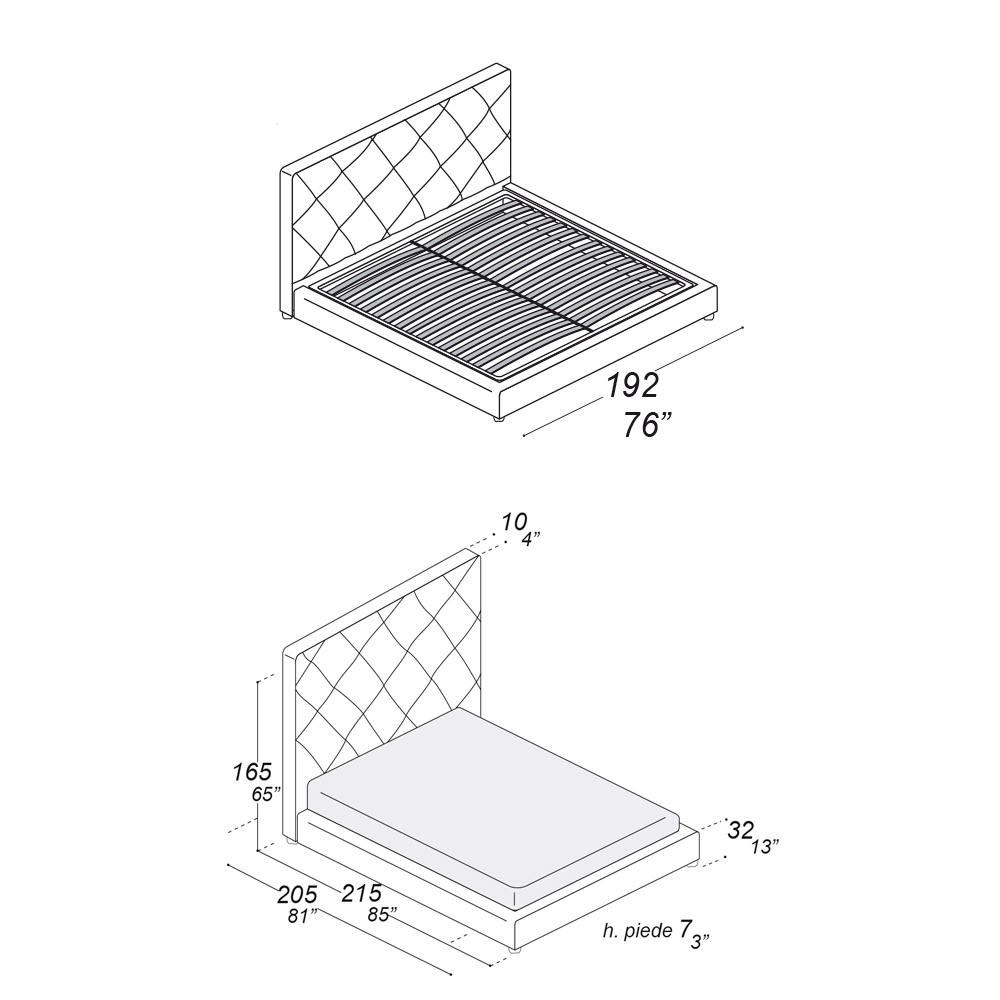 - długość: 192 cm x głębokość: 215 cm x wysokość: 165 cm - pasuje do materaca o wymiarach 180x200 cm