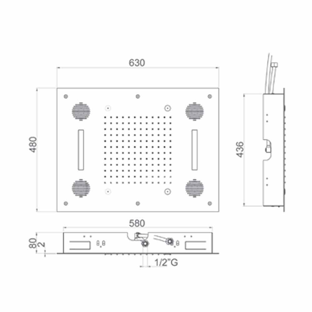 Charakterystyka:- Prostokątna głowica prysznicowa ze stali nierdzewnej odpornej na wapień