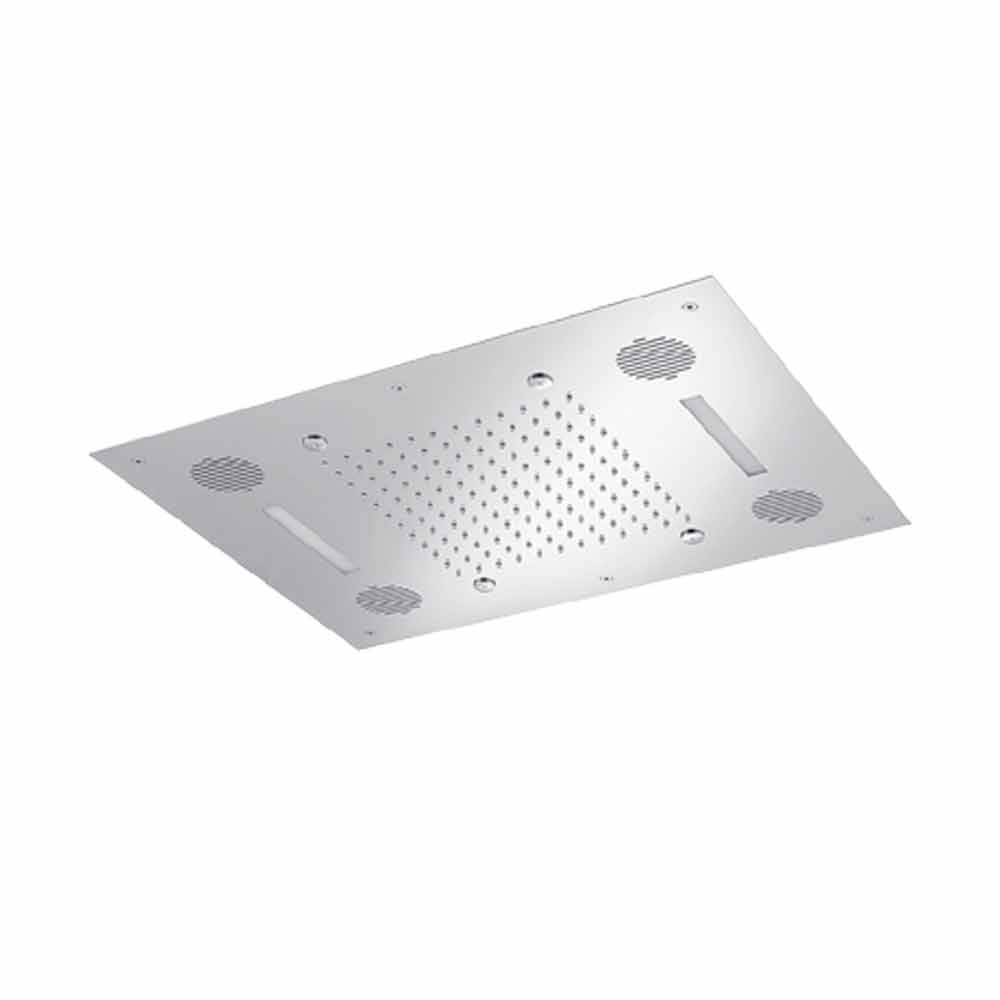 Głowica prysznicowa ze stali nierdzewnej z chromoterapią i dostępem do radia, produkt luksusowy Made in Italy.