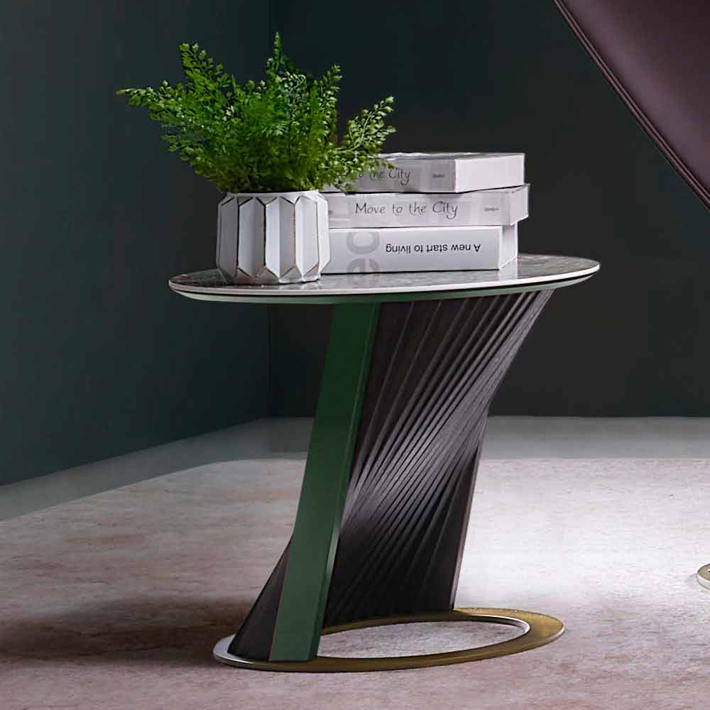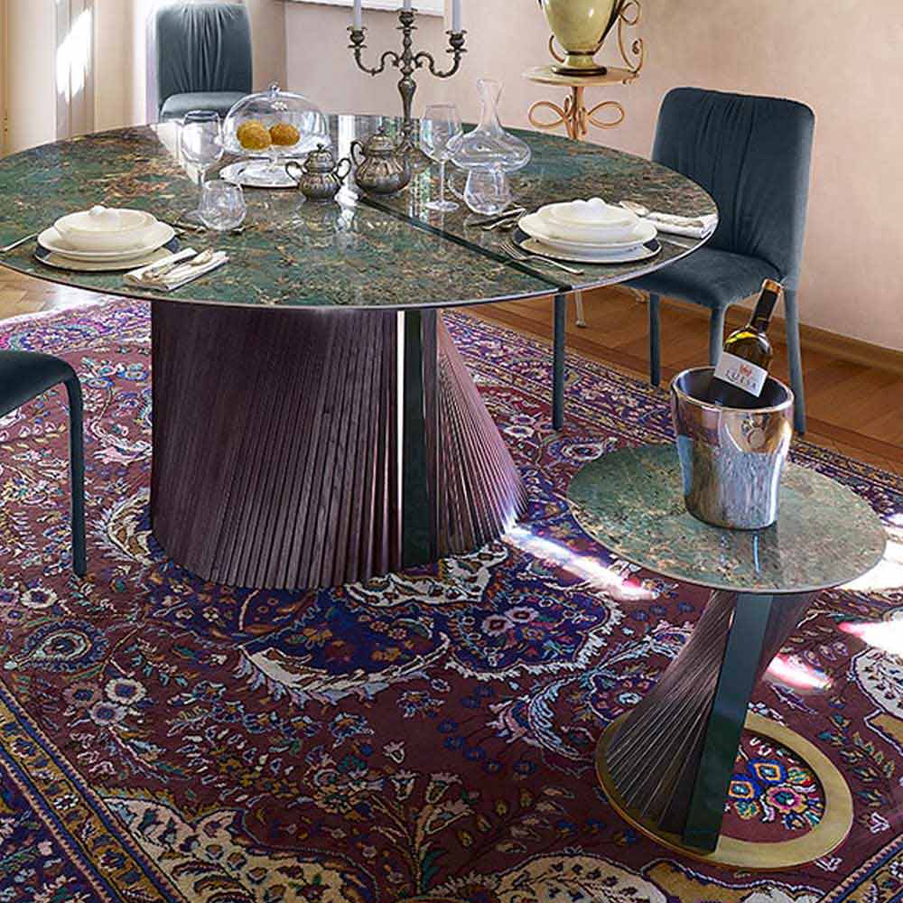 Designerski stolik kawowy z okrągłym blatem z kamionki imitującej marmur, luksusowa pozycja Made in Italy.