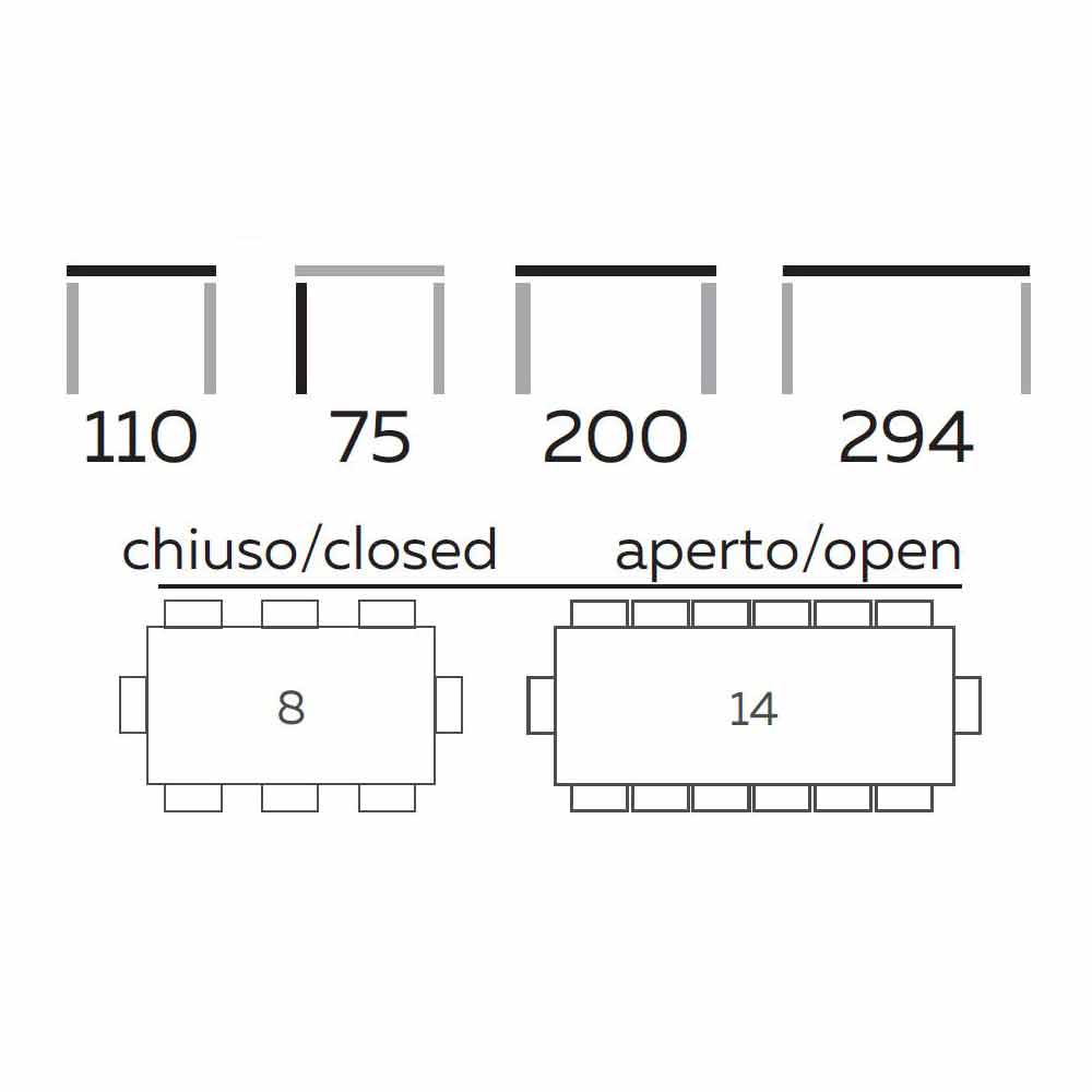 Rozmiar: dł. 200/294 x szer. 110 x wys. 75 cm