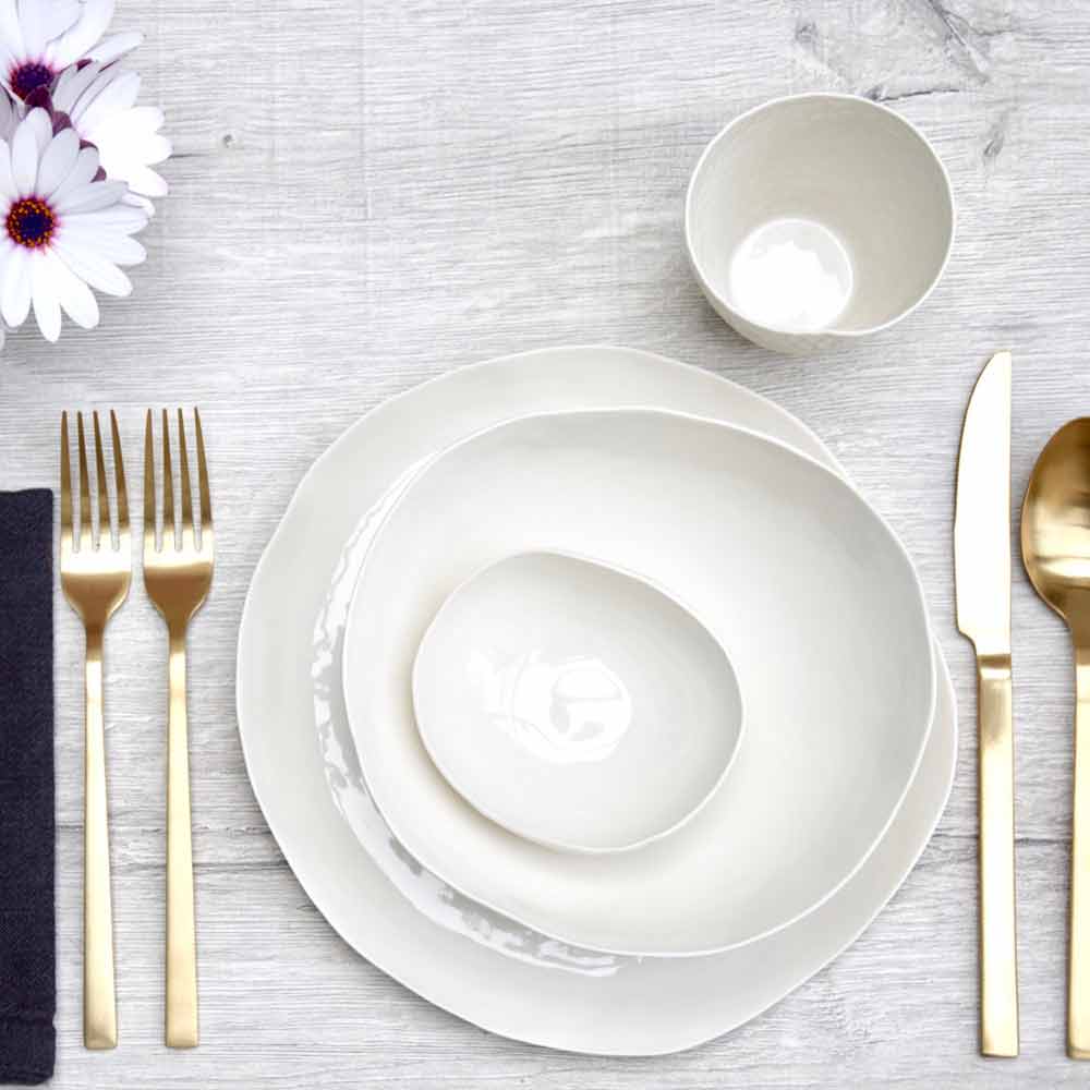 Porcelana to niezwykle wytrzymały materiał, który wypala się w temperaturze wyższej niż tradycyjna ceramika, dzięki czemu jest bardziej wytrzymały i trwalszy, wysoce odporny na plamy i wodoodporny dzięki większej gęstości, twardości i jednorodności. Jego właściwości gwarantuje podwójne wypalanie do 1240 °, po którym bardzo przeświecająca porcelana nabiera cennego ciepłego białego koloru.