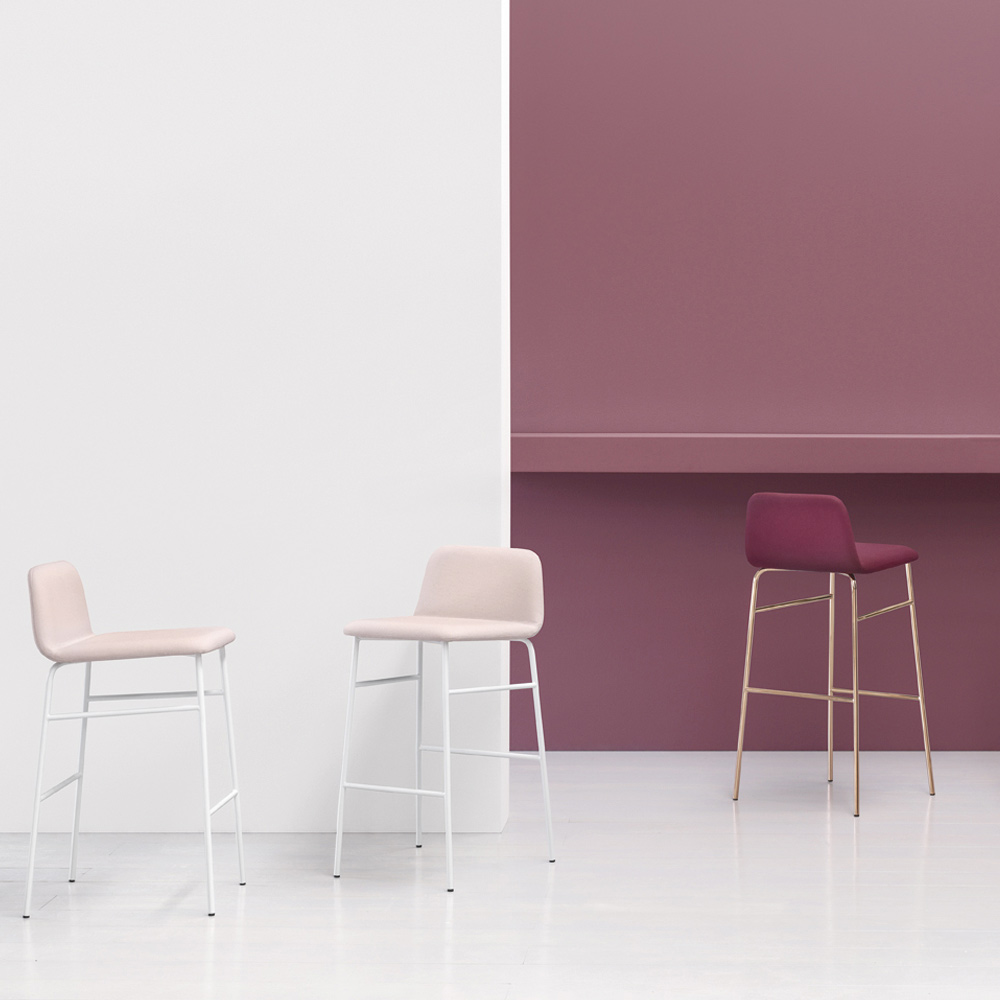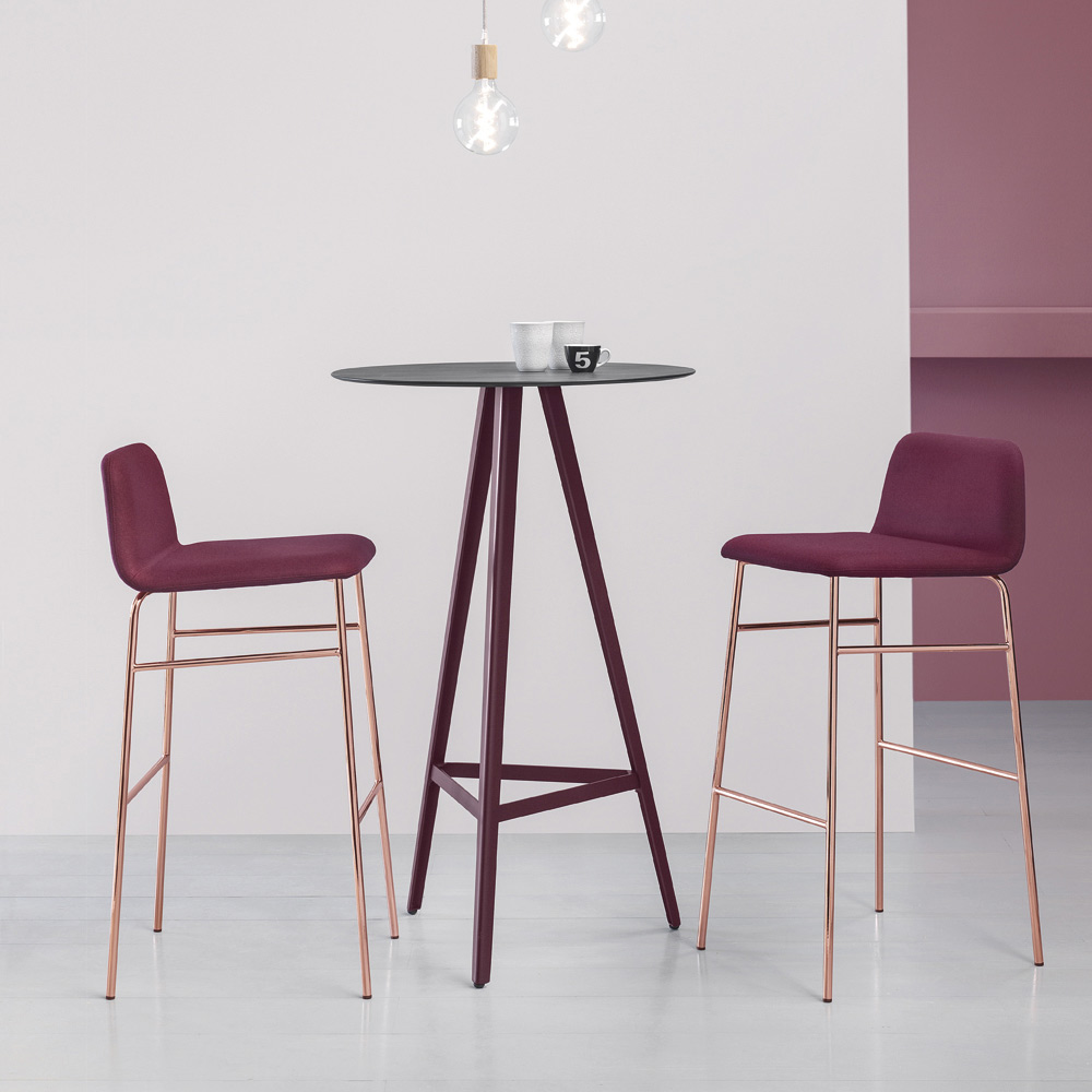 Wysoki stołek wykonany we Włoszech z malowaną metalową konstrukcją i tapicerowaną skorupą pokrytą tkaniną . Proste linie przebiegają przez sylwetkę tego uzupełnienia ze współczesną duszą zaprojektowaną i stworzoną z myślą o tych, którzy szukają minimalistycznego rozwiązania bez konieczności rezygnacji z oryginalnego i nowoczesnego designu. Powstaje fotel, który dzięki zastosowaniu wysokiej jakości surowców godzi funkcjonalność i styl, dopełniając wyposażenie pokoju o niepowtarzalnej osobowości i konkretnej elegancji.