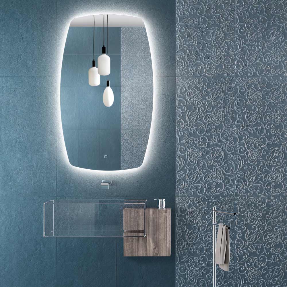 To lustro o eleganckiej i wydłużonej konstrukcji stanowi prawdziwą atrakcję w każdym otoczeniu, upiększając ścianę swoim krętym i nowoczesnym kształtem. Podświetlenie obwodowe dodaje subtelnego, ale skutecznego akcentu jasności, co wzmacnia wrażenie przestronności i dodaje głębi pomieszczeniu.