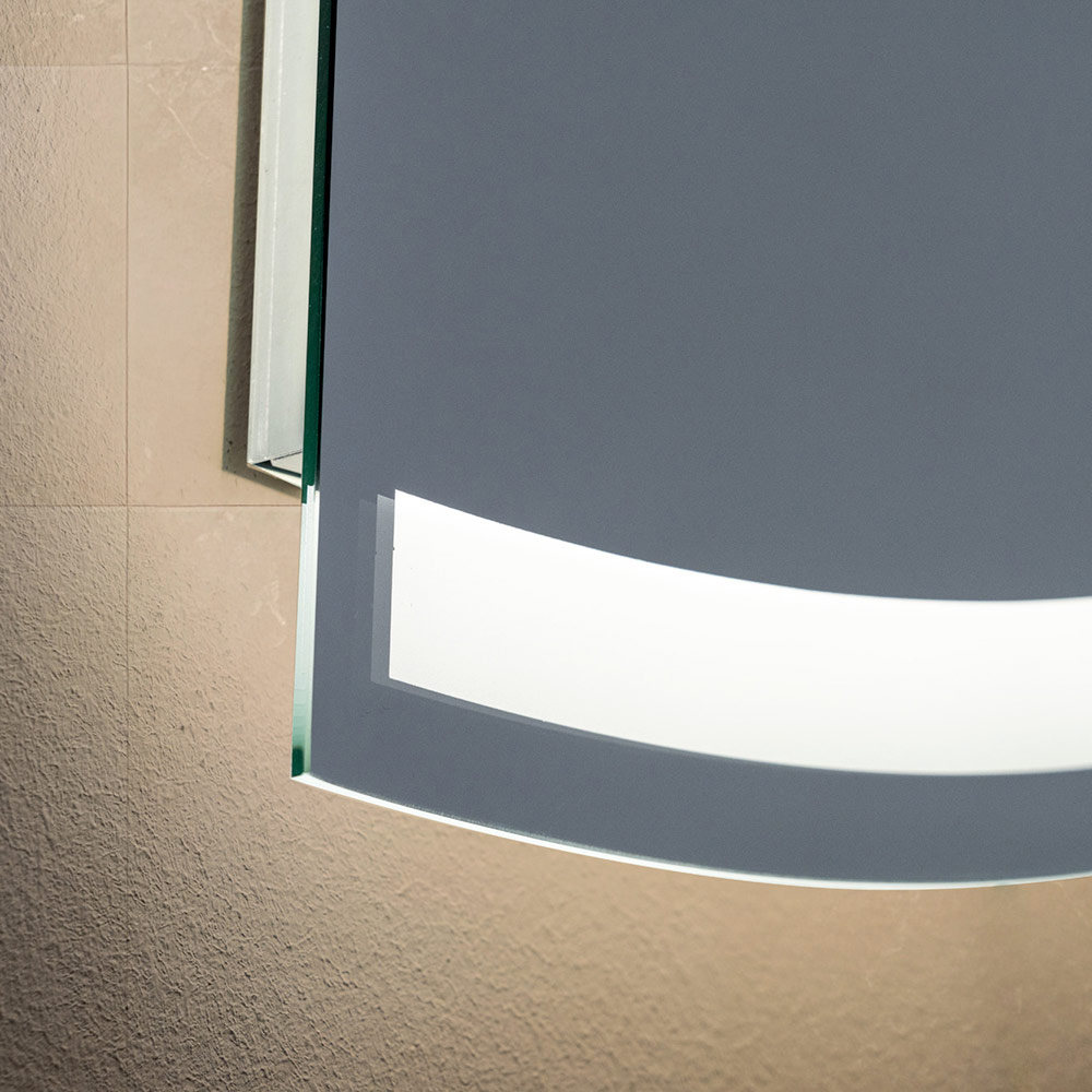 Dodatek wyposażenia, który wykracza poza swoją prostą funkcję odbijającą, przekształcając się w prawdziwy element wystroju . To lustro łazienkowe o minimalistycznym, półokrągłym kształcie i eleganckiej, zintegrowanej oprawie z oświetleniem LED , zostało zaprojektowane tak, aby wzbogacić wnętrze o wyrazisty i nowoczesny akcent.