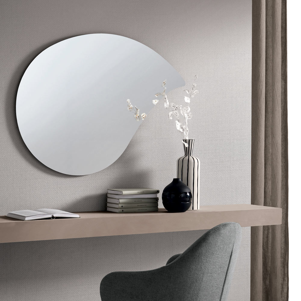 Lustro można stosować pojedynczo jako element ikoniczny lub łączyć je w pary, aby tworzyć dynamiczne kompozycje na ścianie. Lustro staje się wówczas prawdziwym elementem graficznym, zdolnym do zaprojektowania przestrzeni z zachowaniem równowagi i ruchu.