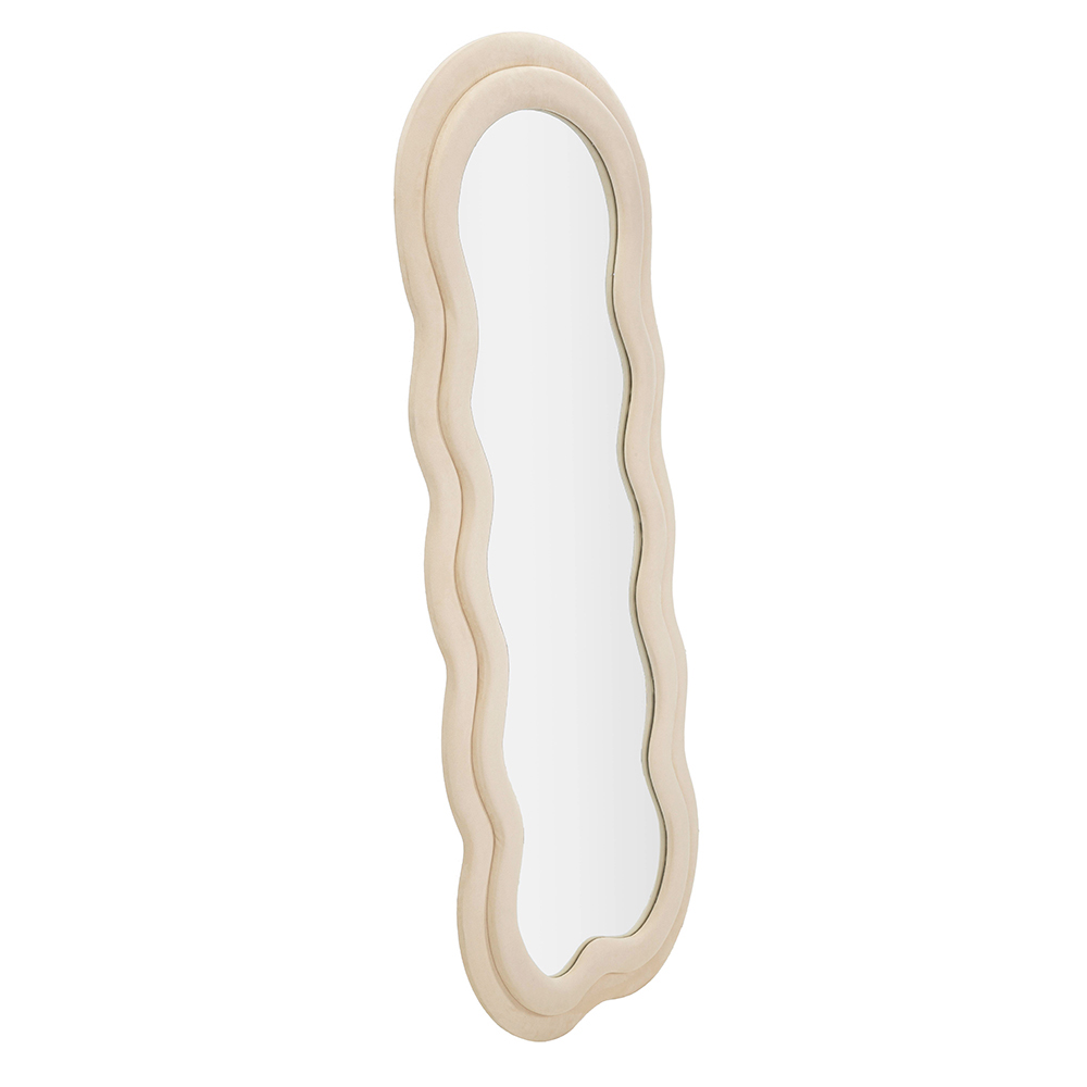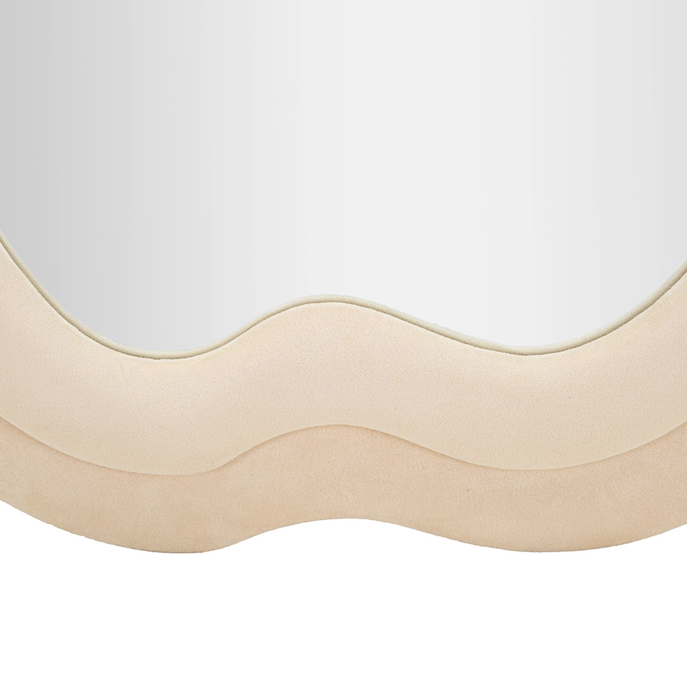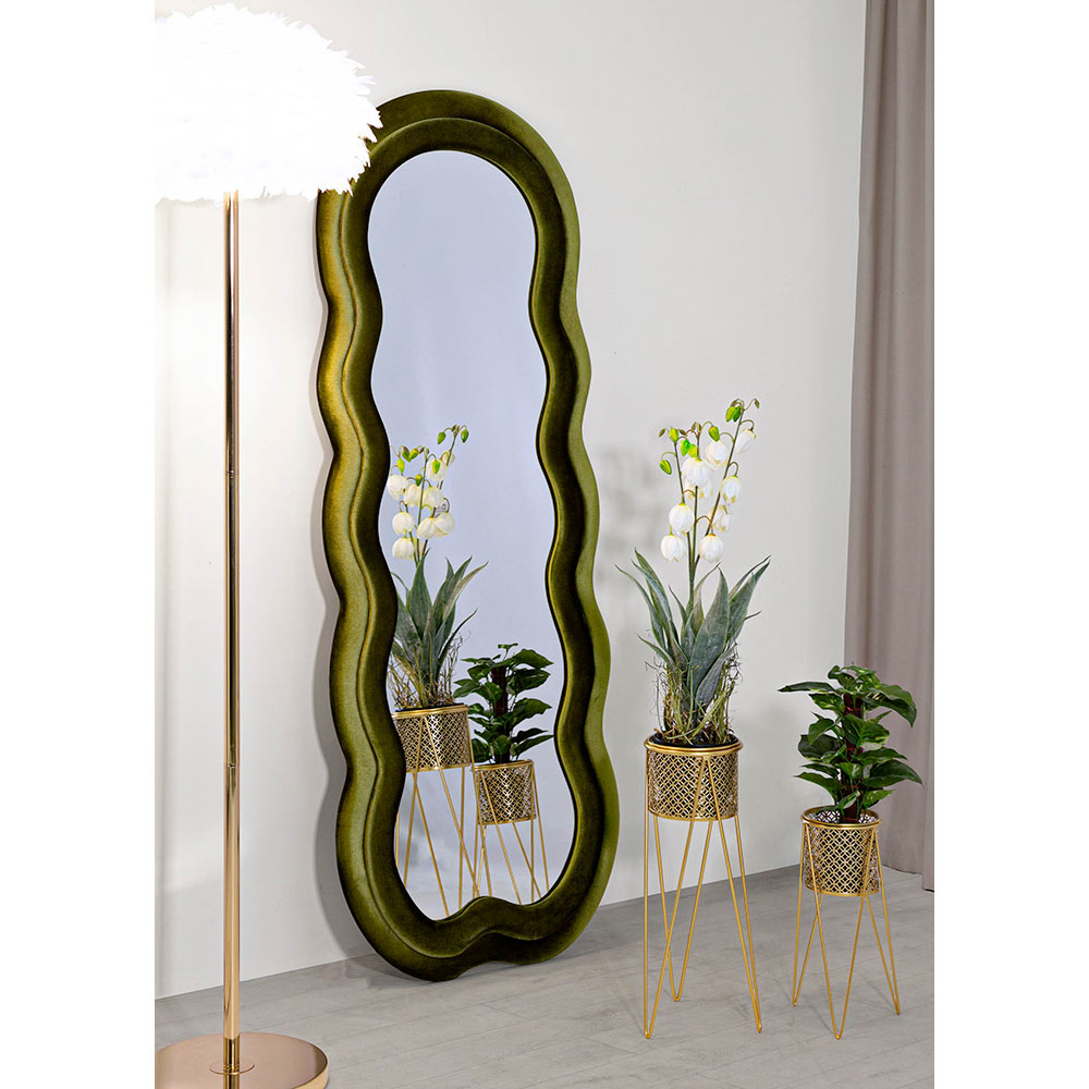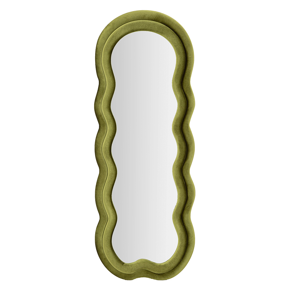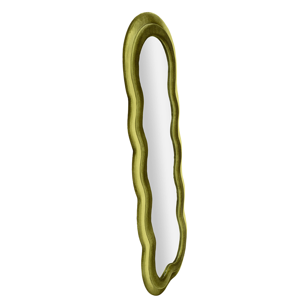 To dekoracyjne lustro jest wysublimowanym przykładem tego, jak meble mogą łączyć funkcjonalność i artystyczne piękno . Dzięki falistej ramie i krętym liniom ten mebel przemawia językiem płynnej elegancji i nowoczesnego designu . Aksamitne wykończenie podkreśla jego organiczny kształt, dzięki czemu stanowi doskonałe uzupełnienie kolorowych lub neutralnych ścian, harmonizując z szeroką gamą palet.