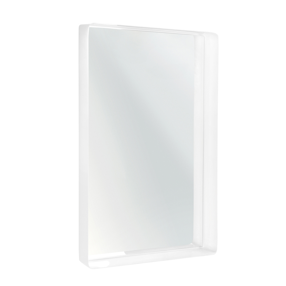 Lustro z przezroczystą ramą z pleksi i farbą z oświetleniem led, wyprodukowane we Włoszech.