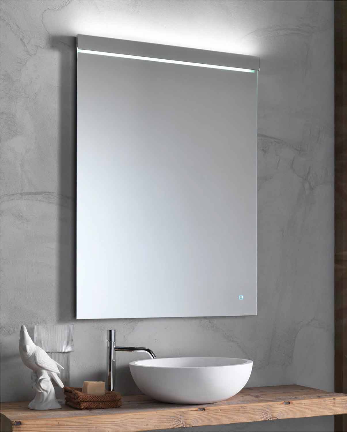 Nowoczesne prostokątne lustro ścienne ze zintegrowanym oświetleniem LED Made in Italy.