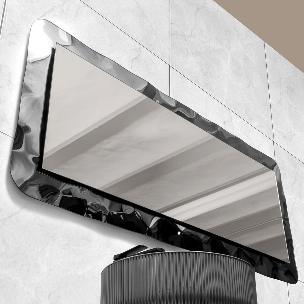 To okrągłe lustro łazienkowe łączy w sobie elegancję i charakter. Posiada dekoracyjny, zakrzywiony szklany panel z efektem „płynności”, uzyskanym poprzez ukształtowanie tafli szkła o grubości 5 mm i pokrycie jej lustrem refleksyjnym, zabezpieczonym żywicą antyoksydacyjną.