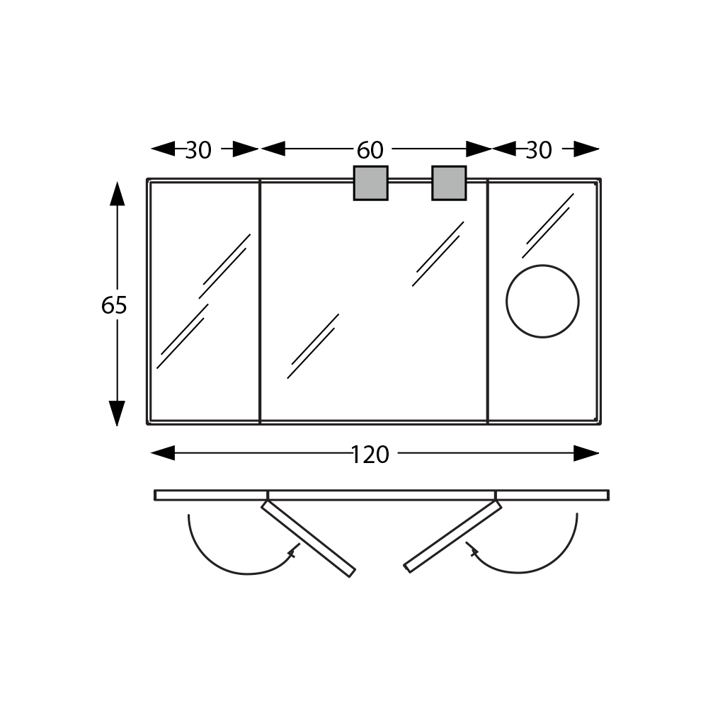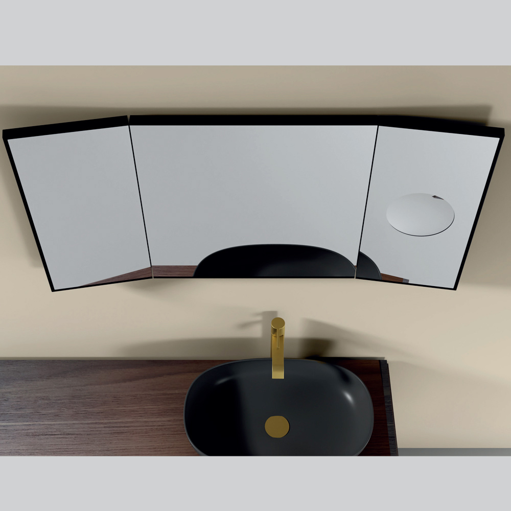 Dwa ruchome panele boczne otwierają się, ukazując dodatkowe kąty, umożliwiając pełny i wszechstronny widok, idealny do wspólnych środowisk lub momentów higieny osobistej, które wymagają szerszej perspektywy. Ta cecha sprawia, że lustro jest niezwykle elastyczne i można je dostosować do potrzeb osób, które z niego korzystają.