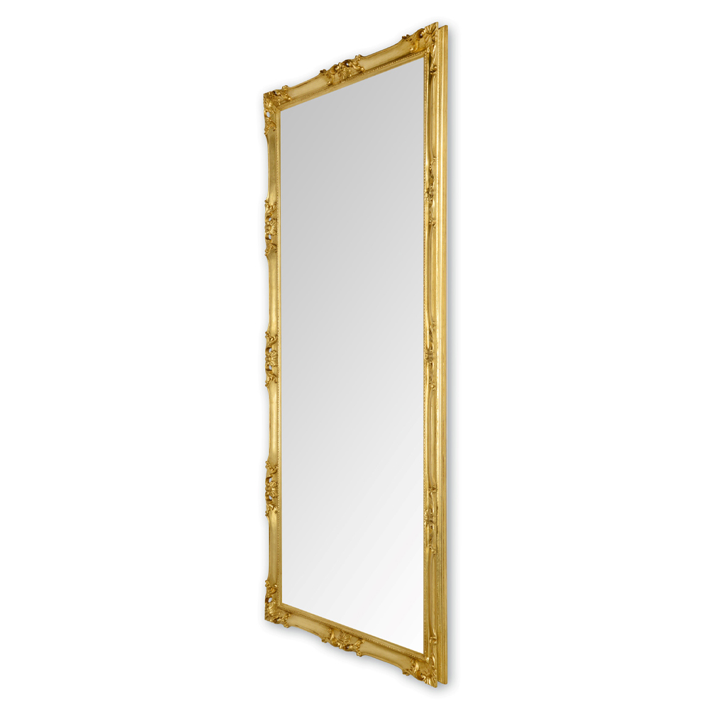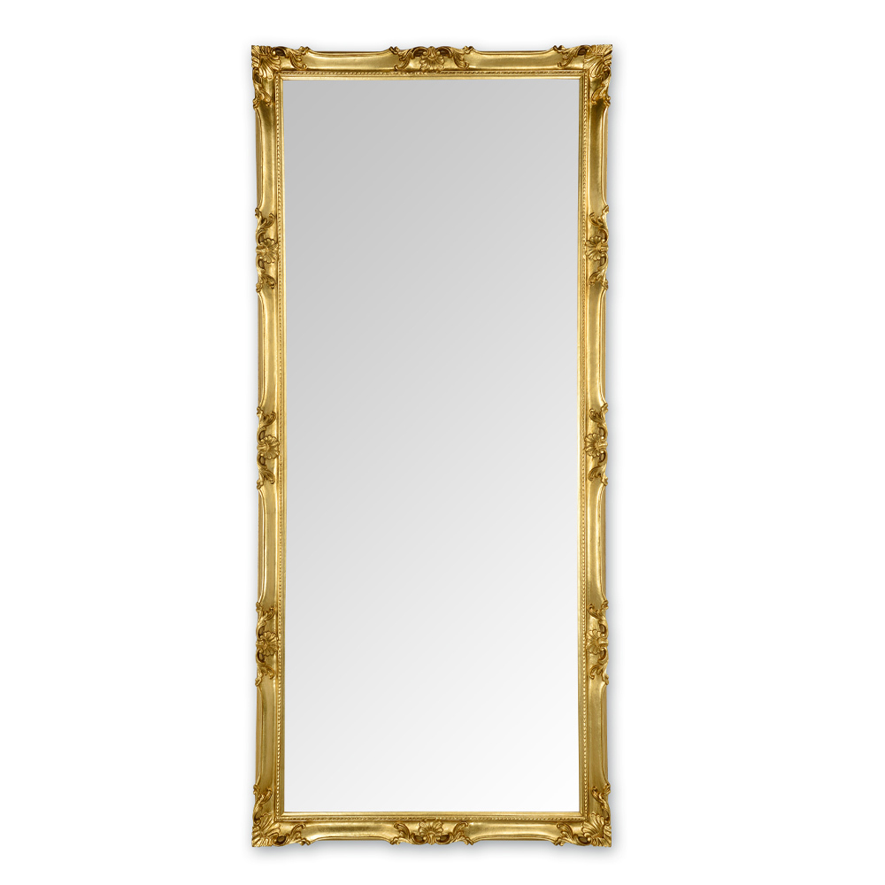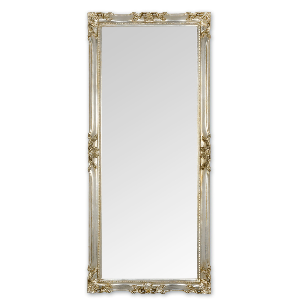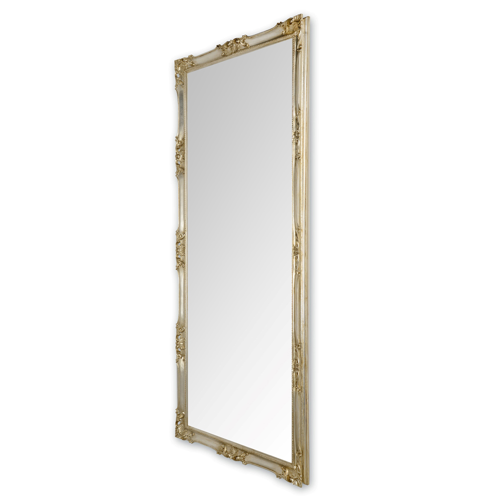 ręcznie wykonaną drewnianą ramą w wykończeniu w kolorze złotym lub srebrnym. Mebel o