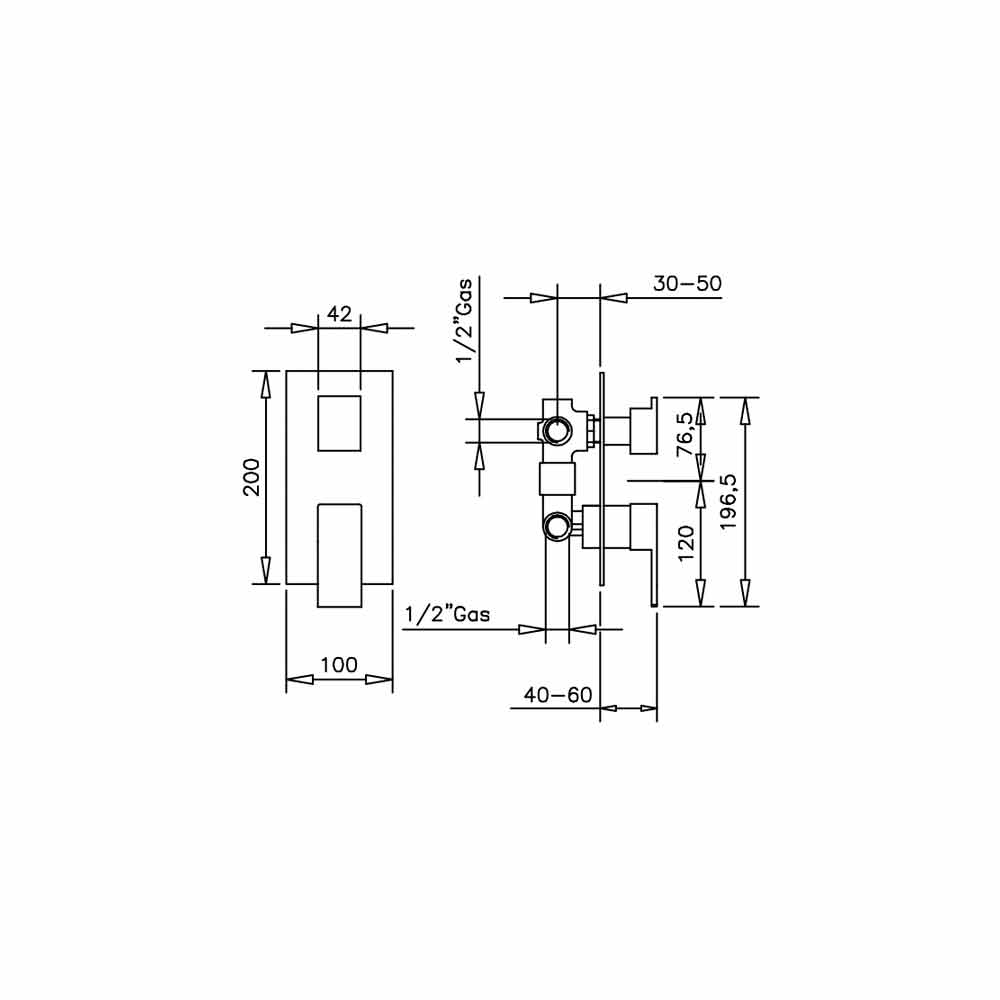 Bateria natryskowa do zabudowy z przełącznikiem 3-drogowym, w komplecie z częścią do zabudowy i częściami zewnętrznymi.