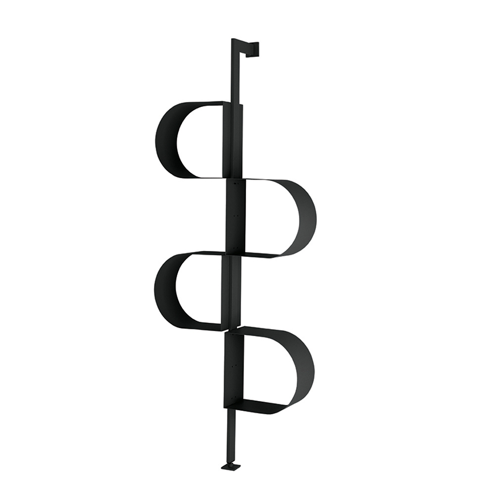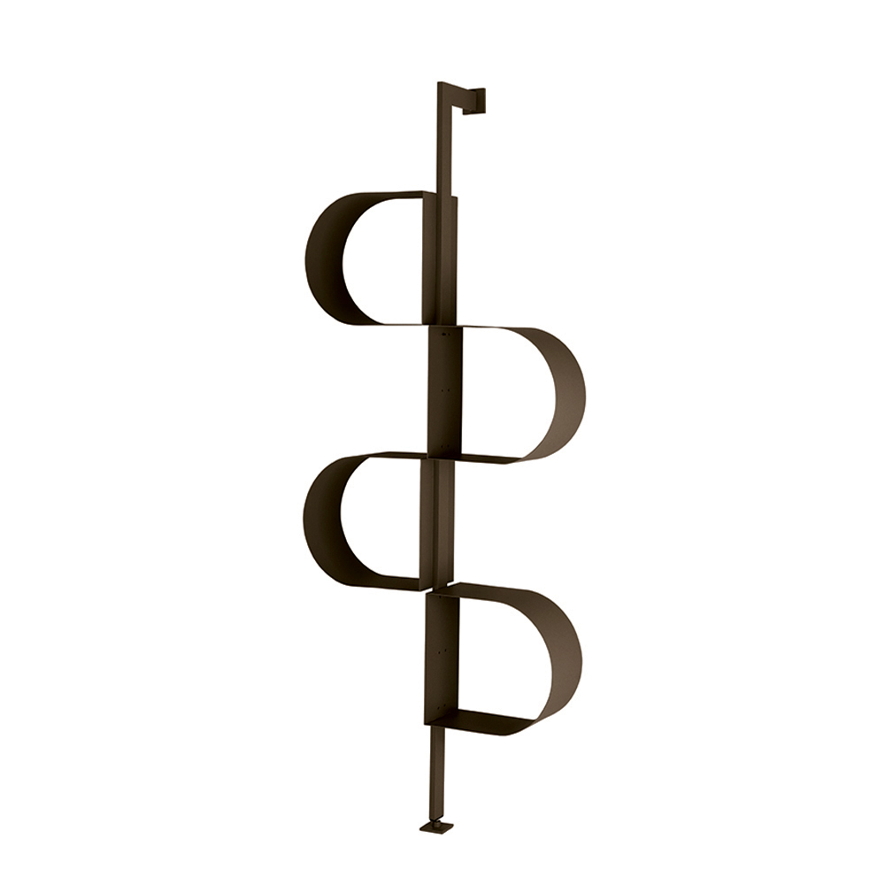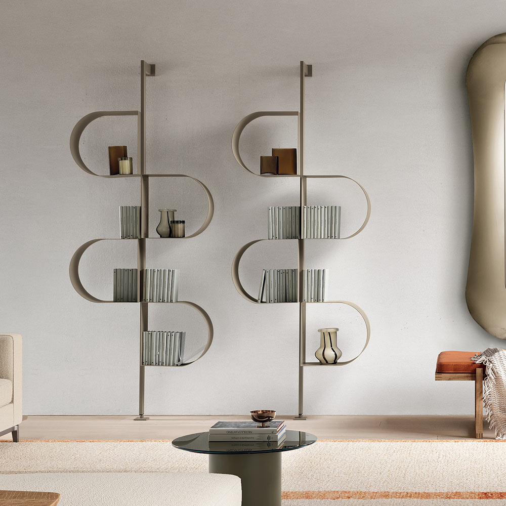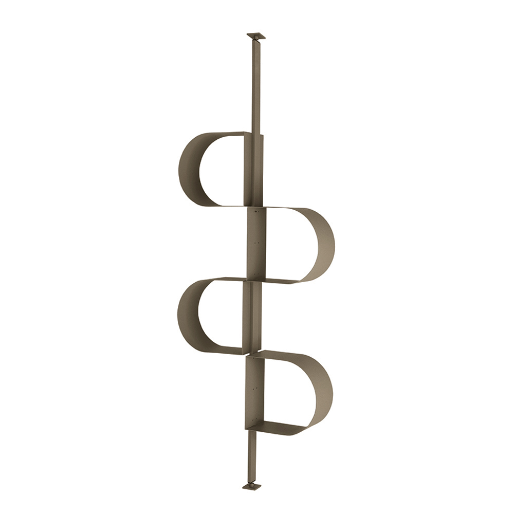 Wykonany z malowanego metalu regał na książki rozwija się pionowo, a jego konstrukcja przypomina ciągłą wstęgę , tworząc rytmiczny ciąg przegródek . Ten wyjątkowy projekt pozwala na oryginalne i harmonijne uporządkowanie książek i przedmiotów dekoracyjnych.