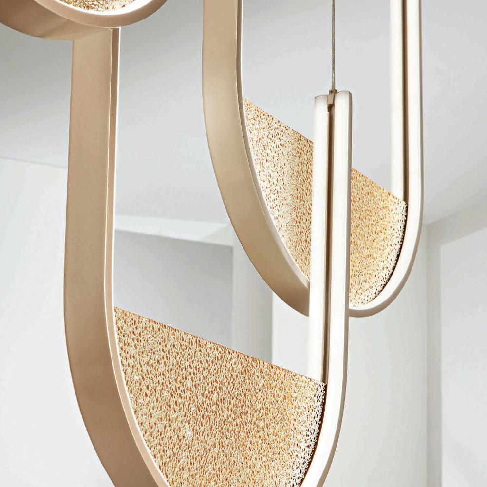 Metalowy żyrandol ze ściemnianym oświetleniem LED i szklanym wkładem Made in Italy